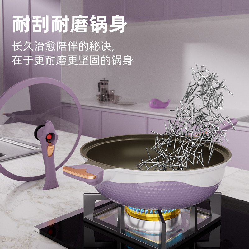 苏尔玛双色钛金不粘锅健康无涂层鲸鱼微压炒锅家用陶瓷锅炉具通用
