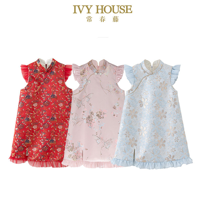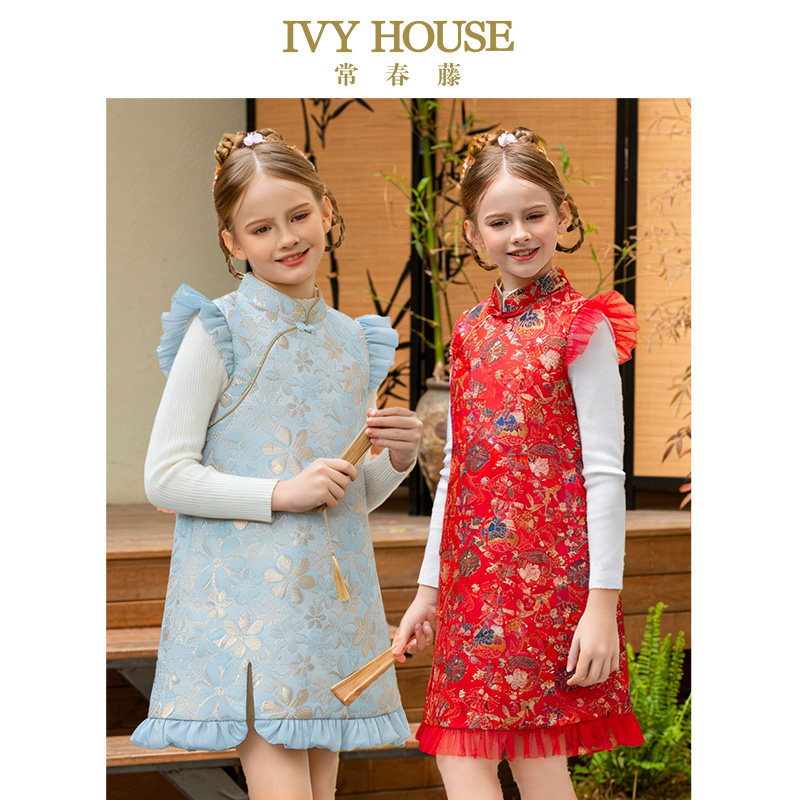 IVY HOUSE常春藤儿童装女童秋季款 新中式旗袍国风连衣裙温暖加绒