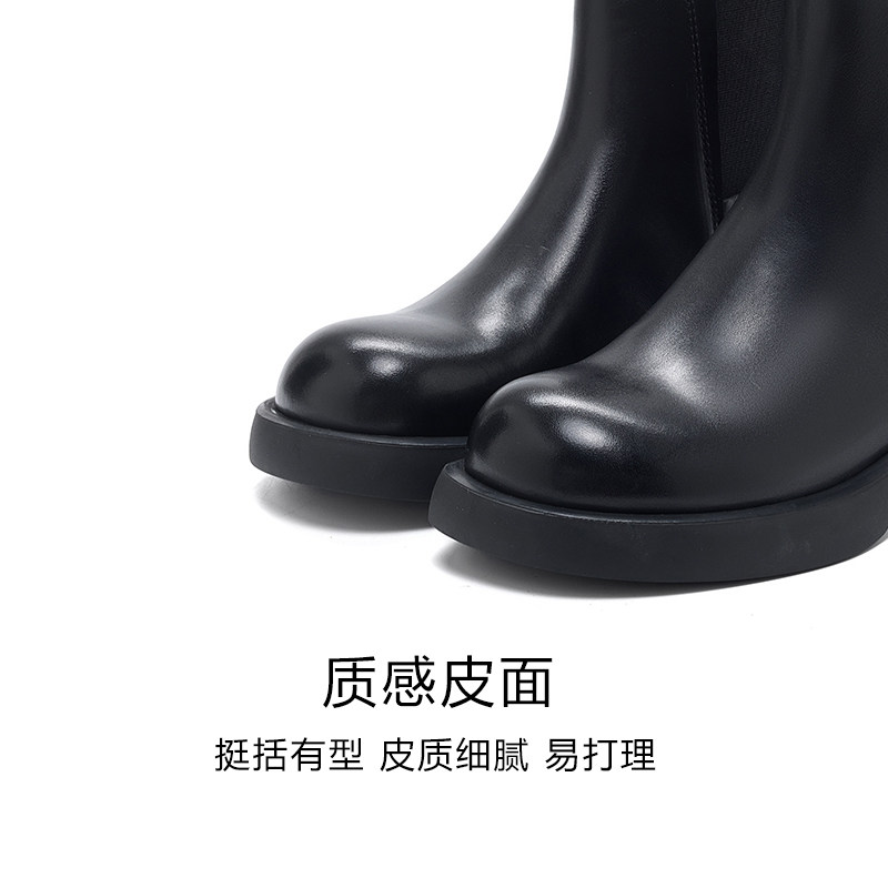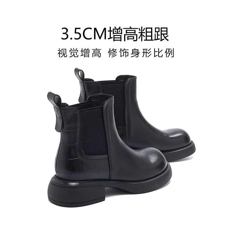 天美意粗跟厚底增高加绒英伦马丁靴女鞋子休闲短靴皮靴2025冬新款
