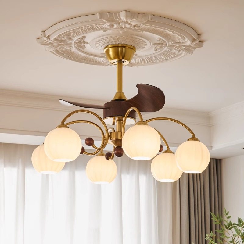 长虹中古风客厅风扇灯吊扇灯胡桃木色主卧护眼客厅吊灯带风扇灯