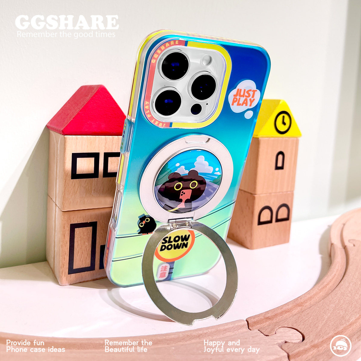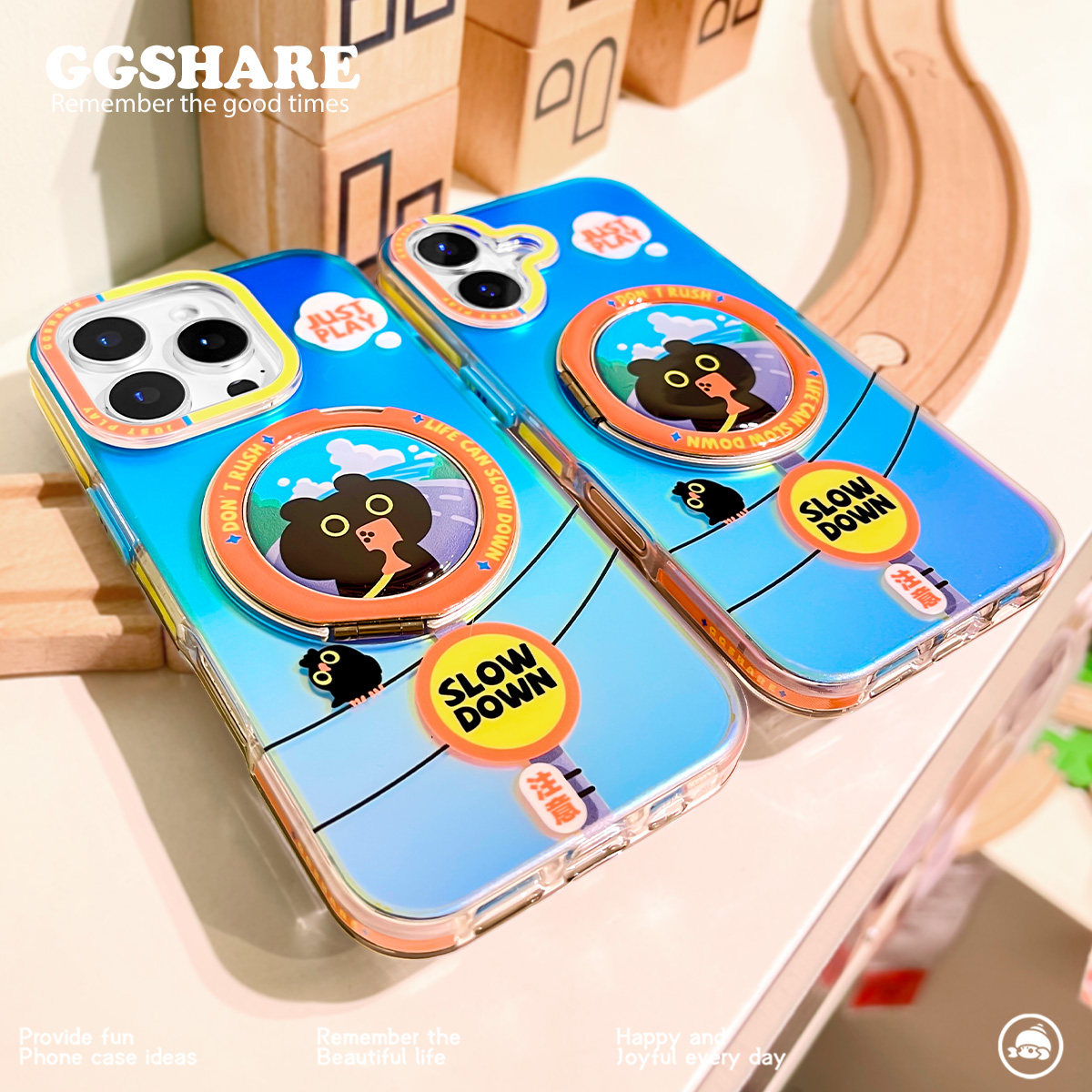 寄居蟹原创旅行猫咪支点壳适用苹果16手机壳iPhone15ProMax一体式支架14pro镭射磨砂高级感13全包防摔不撞款