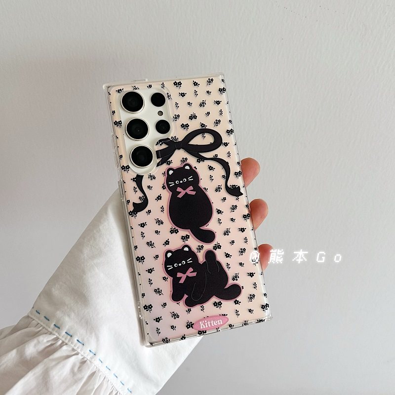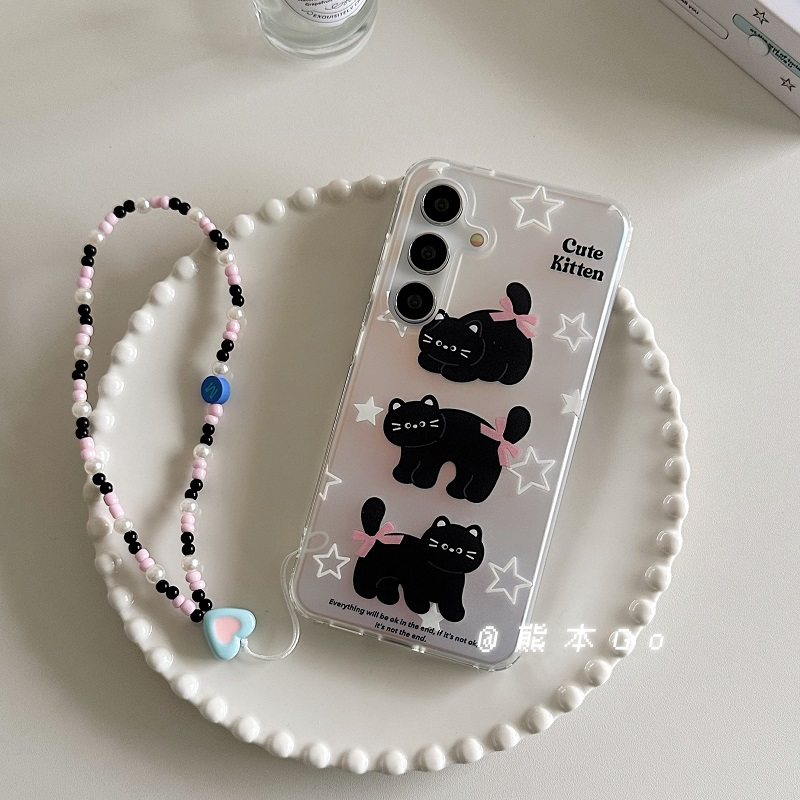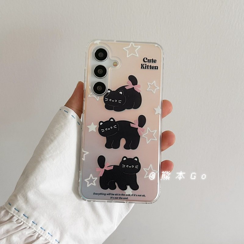 可爱猫咪粉色少女心适用三星S24ultra手机壳S23保护壳S25+全包防摔壳S22磨砂浮雕镭射壳S23+个性ins韩风挂链