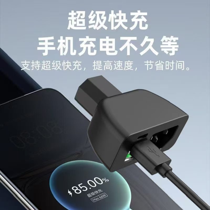 【品字口】三口电动车手机充电器快充电瓶车车载USB快闪充转换头