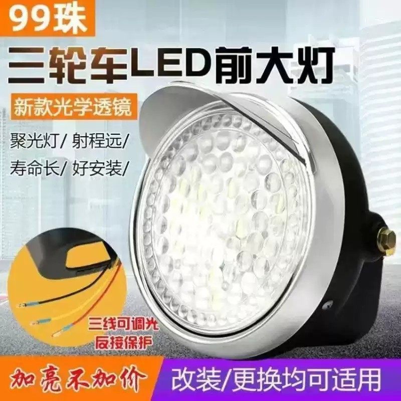 电动三轮车大灯超亮led电动车大灯12v48v60v通用大灯总成强光防水