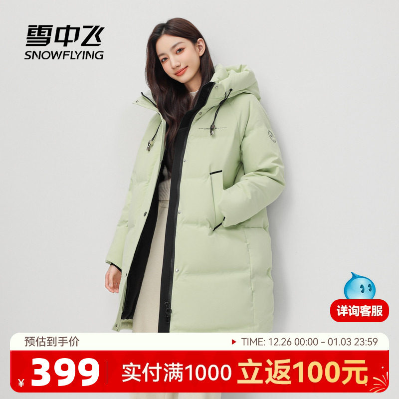 雪中飞2025冬新款女士长款羽绒服连帽时尚简约保暖舒适公主优雅美