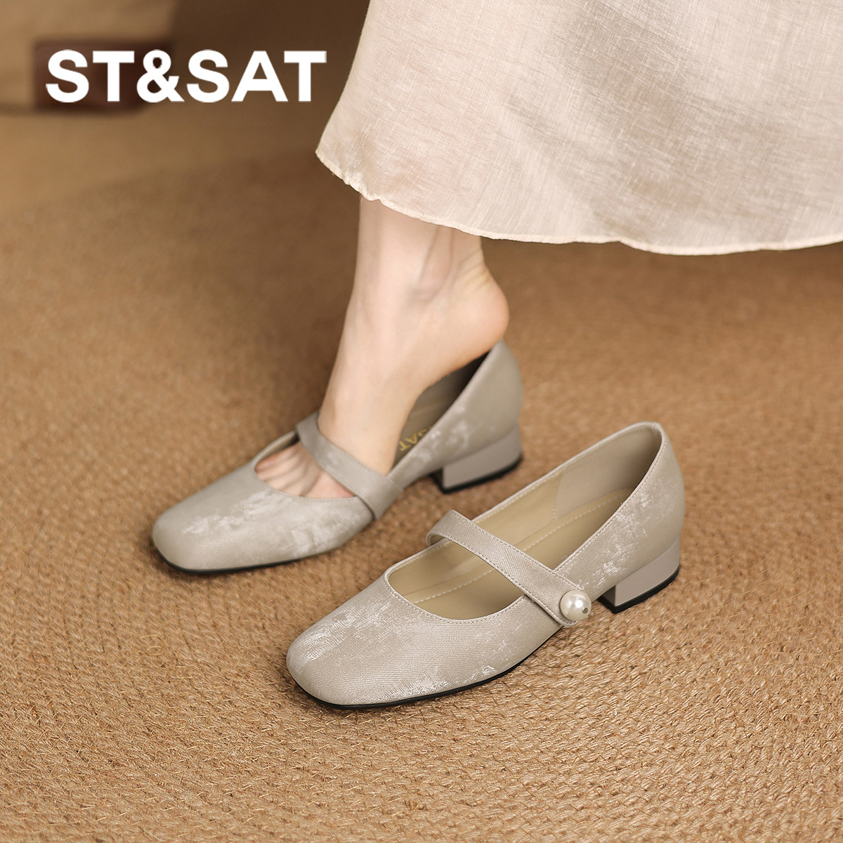 星期六浅口单鞋女新款新中式春季鞋子法式真皮低跟玛丽珍女鞋