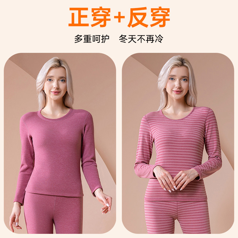 莹柔7057秋冬中厚棉秋衣秋裤圆领修身保暖内衣棉毛衫基础打底套装