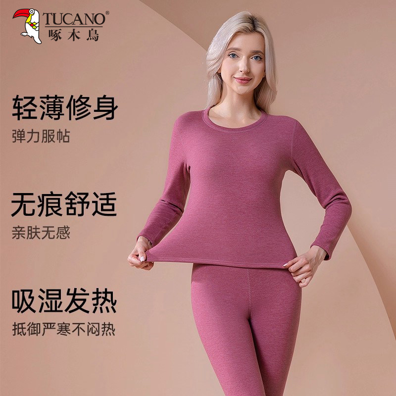啄木鸟保暖内衣女士2025新款羽毛绒蚕丝圆领秋衣秋裤女款套装冬季