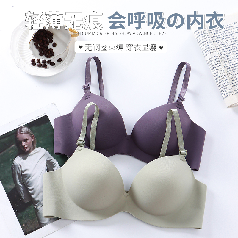 无痕内衣女小胸聚拢夏季薄款运动一体美背心式固定杯无钢圈文胸罩