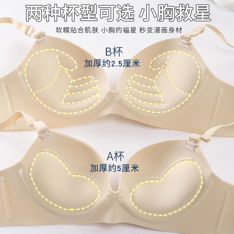加厚5cm小胸显大内衣女聚拢防下垂文胸一片式无痕女士无钢圈胸罩