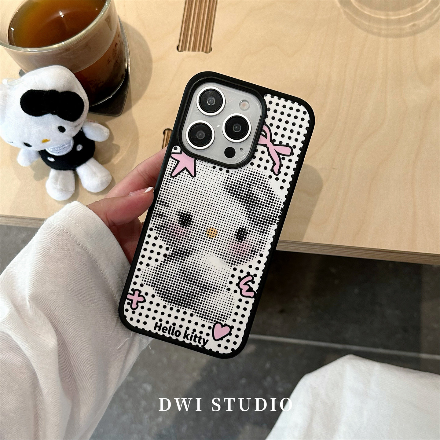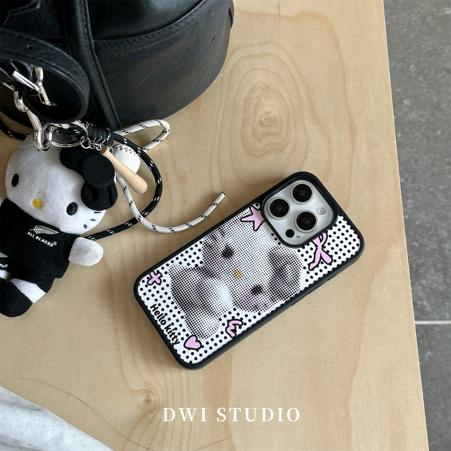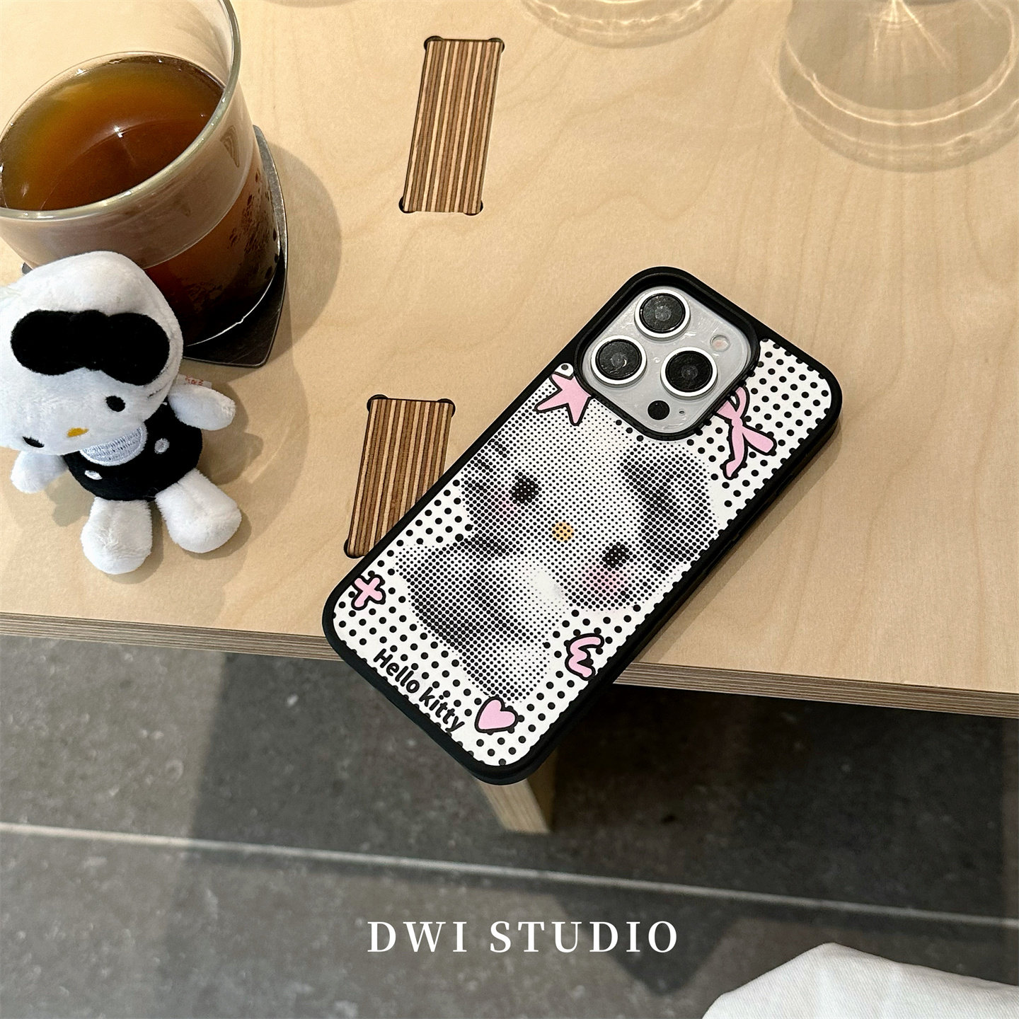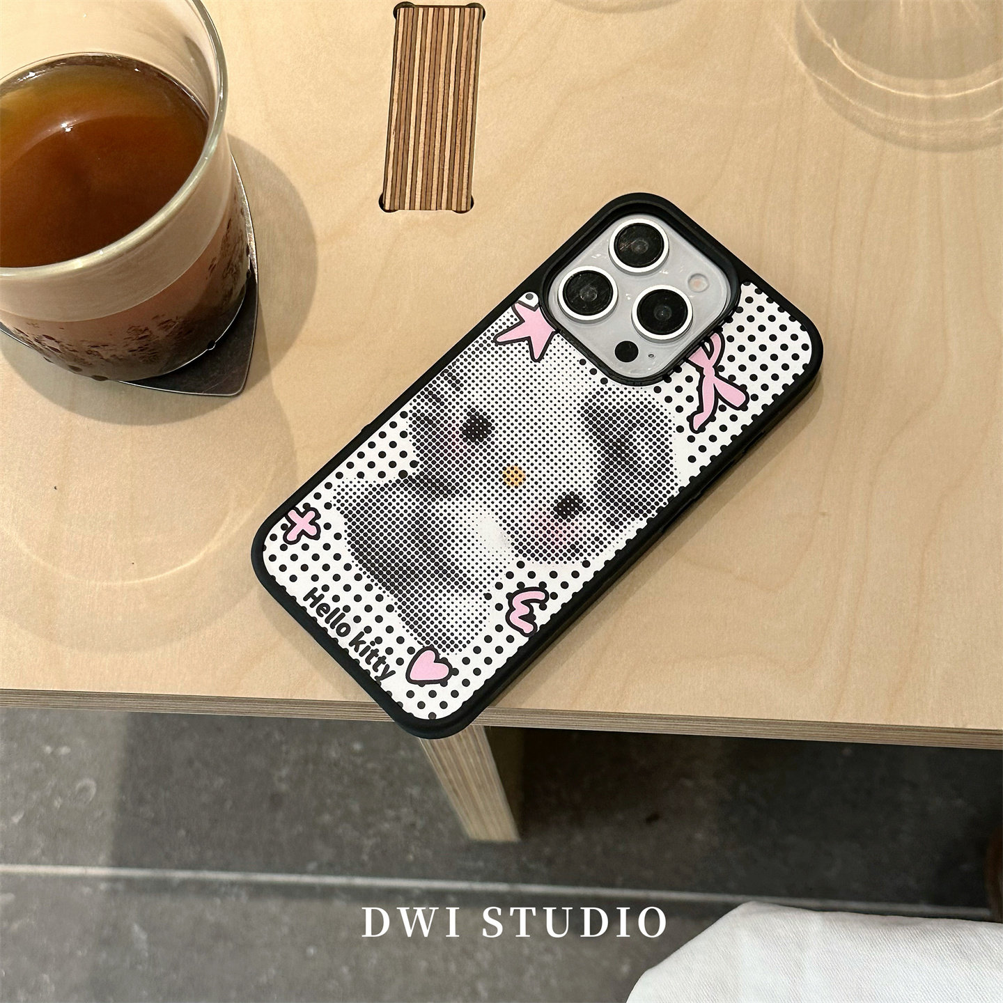 DWI STUDIO小众韩系马赛克Kitty手机壳16promax/14适用于苹果15pro/17promax/13新款iPhone15黑边壳