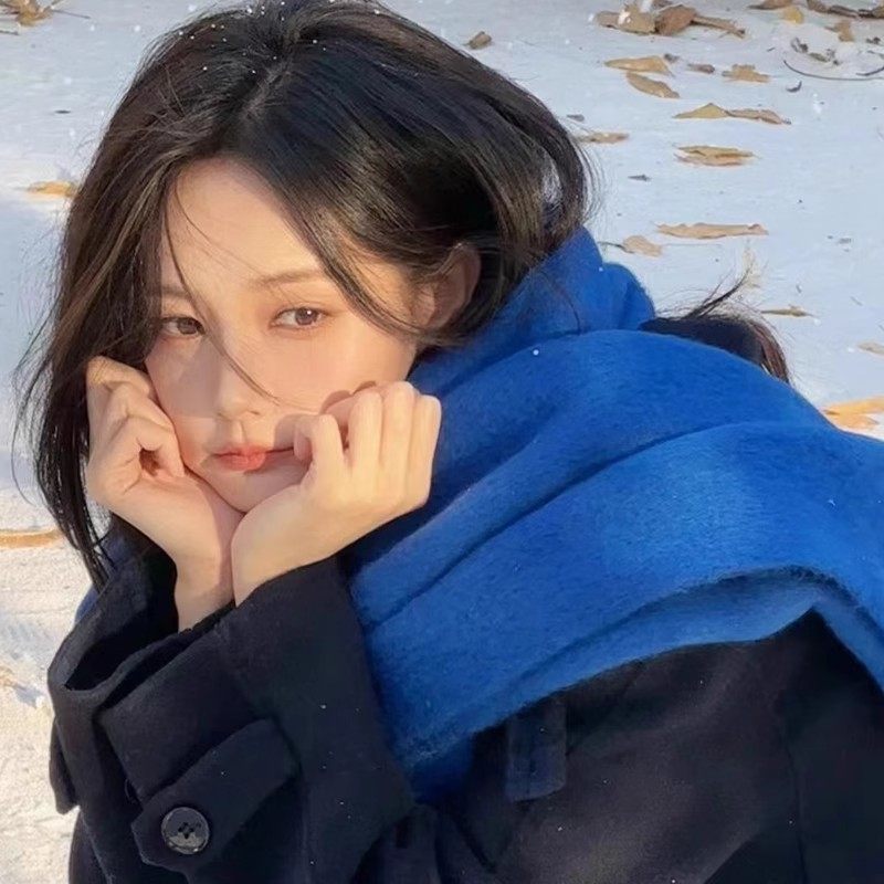 李一桐同款克莱因蓝围巾女款韩版2025新款秋冬氛围感蓝色羊绒围脖