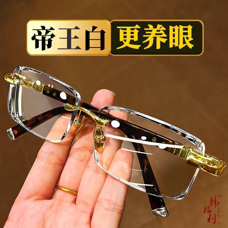 德国原装高档水晶老花镜男款自动智能变焦防蓝光超轻老人老花眼镜