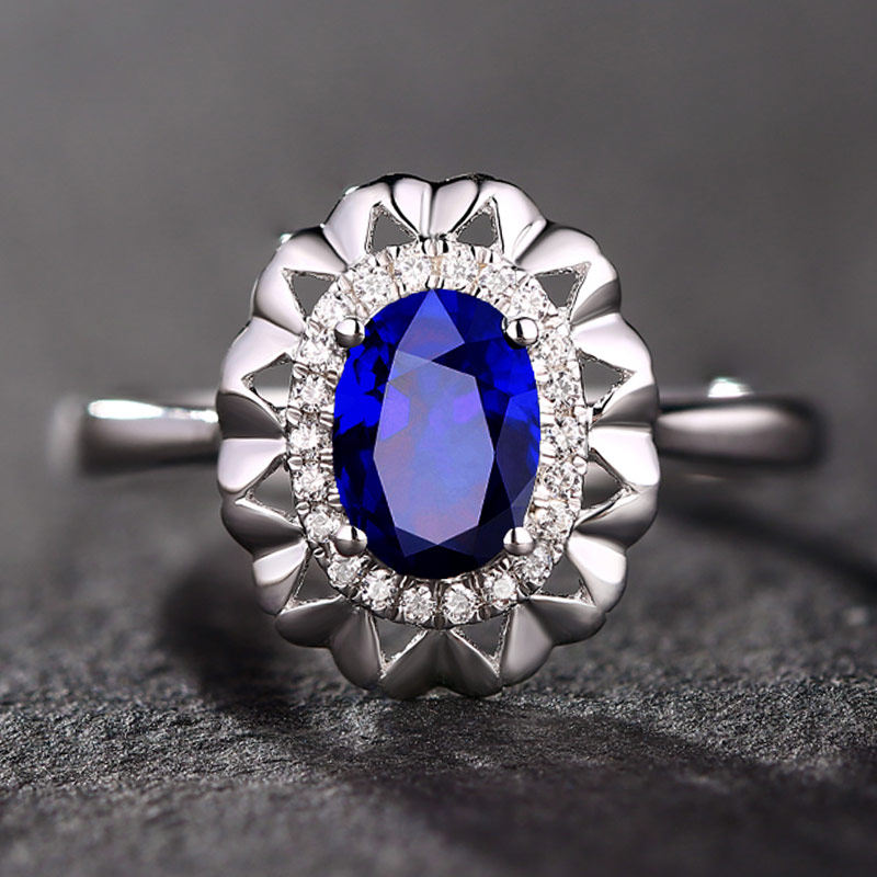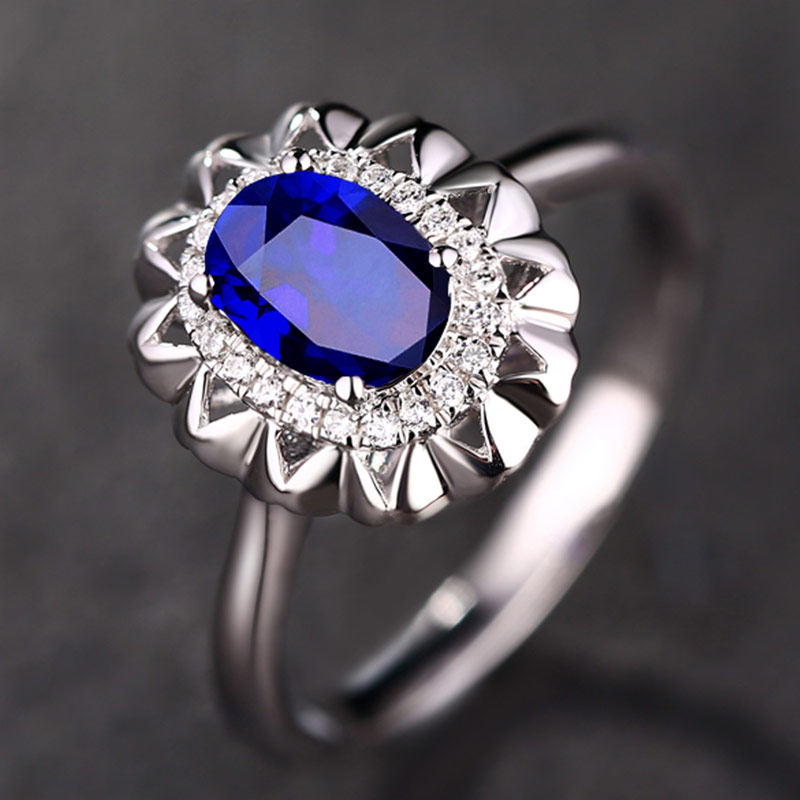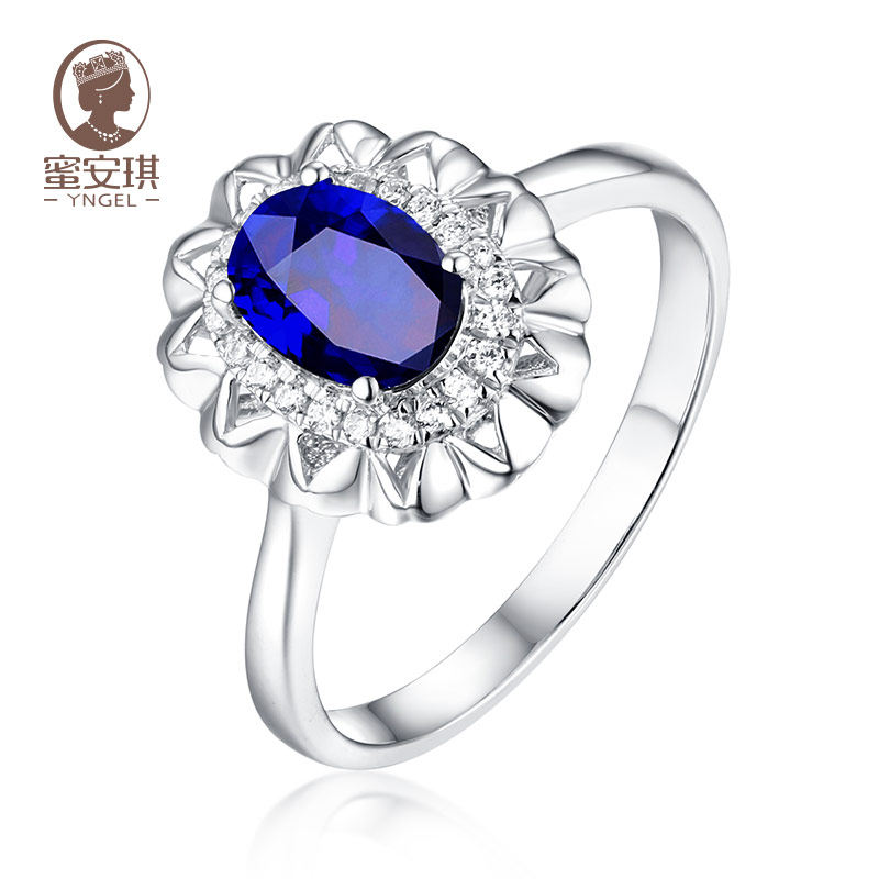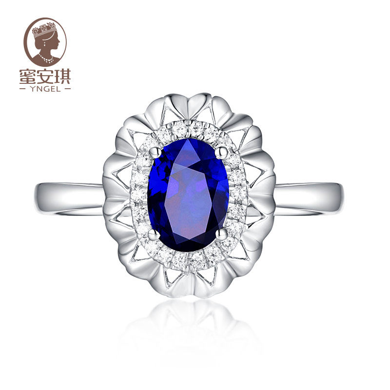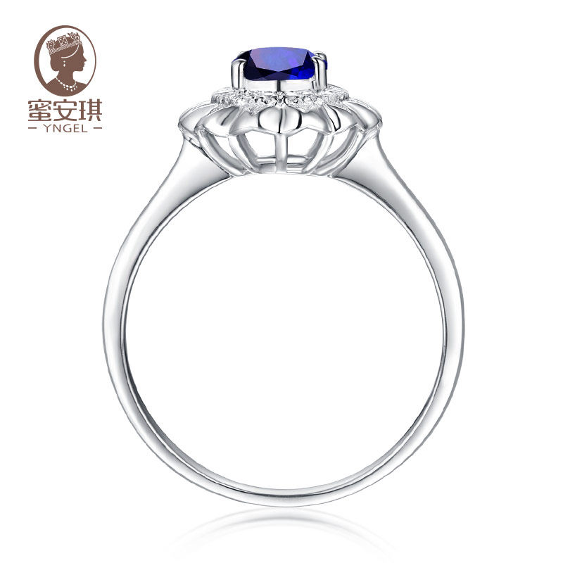 蜜安琪0.85克拉斯里兰卡蓝宝石戒指女18K金钻石镶嵌简约彩宝定做