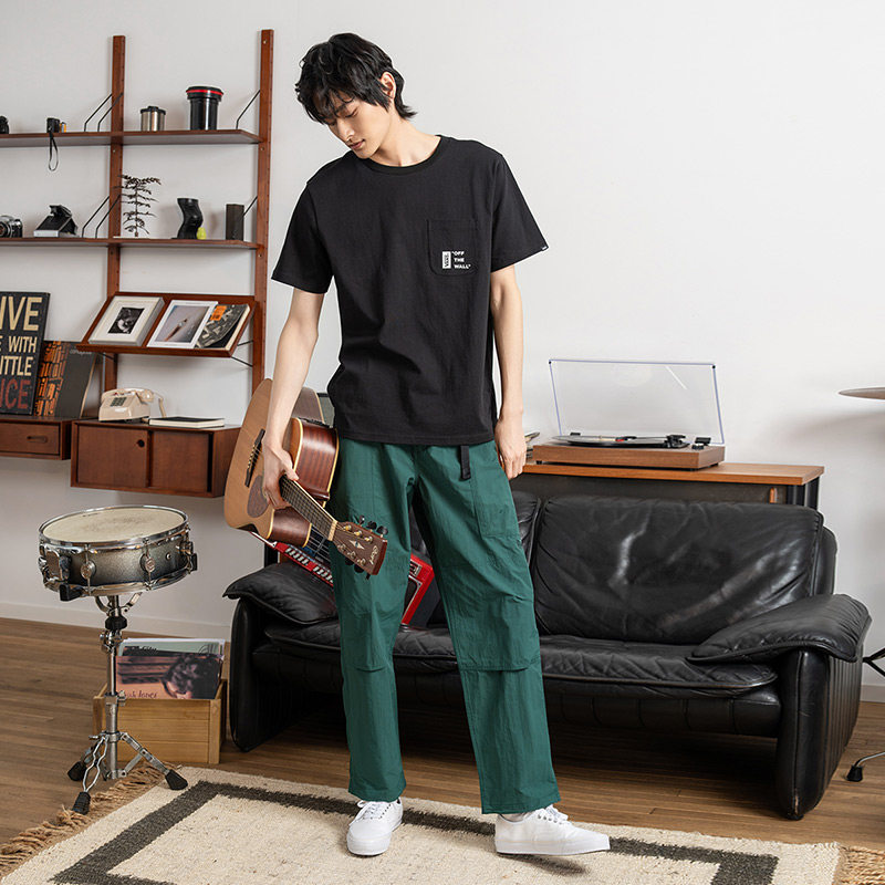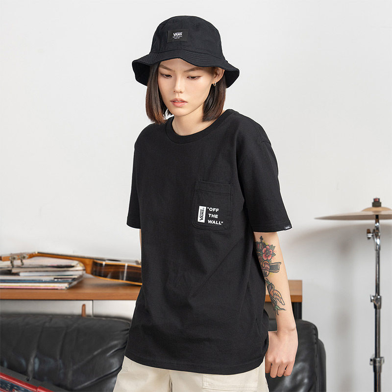 Vans范斯官方 男女情侣黑色短袖T恤口袋Logo宽松