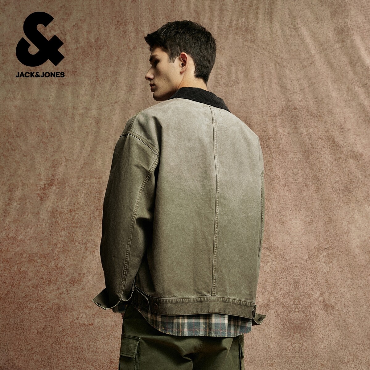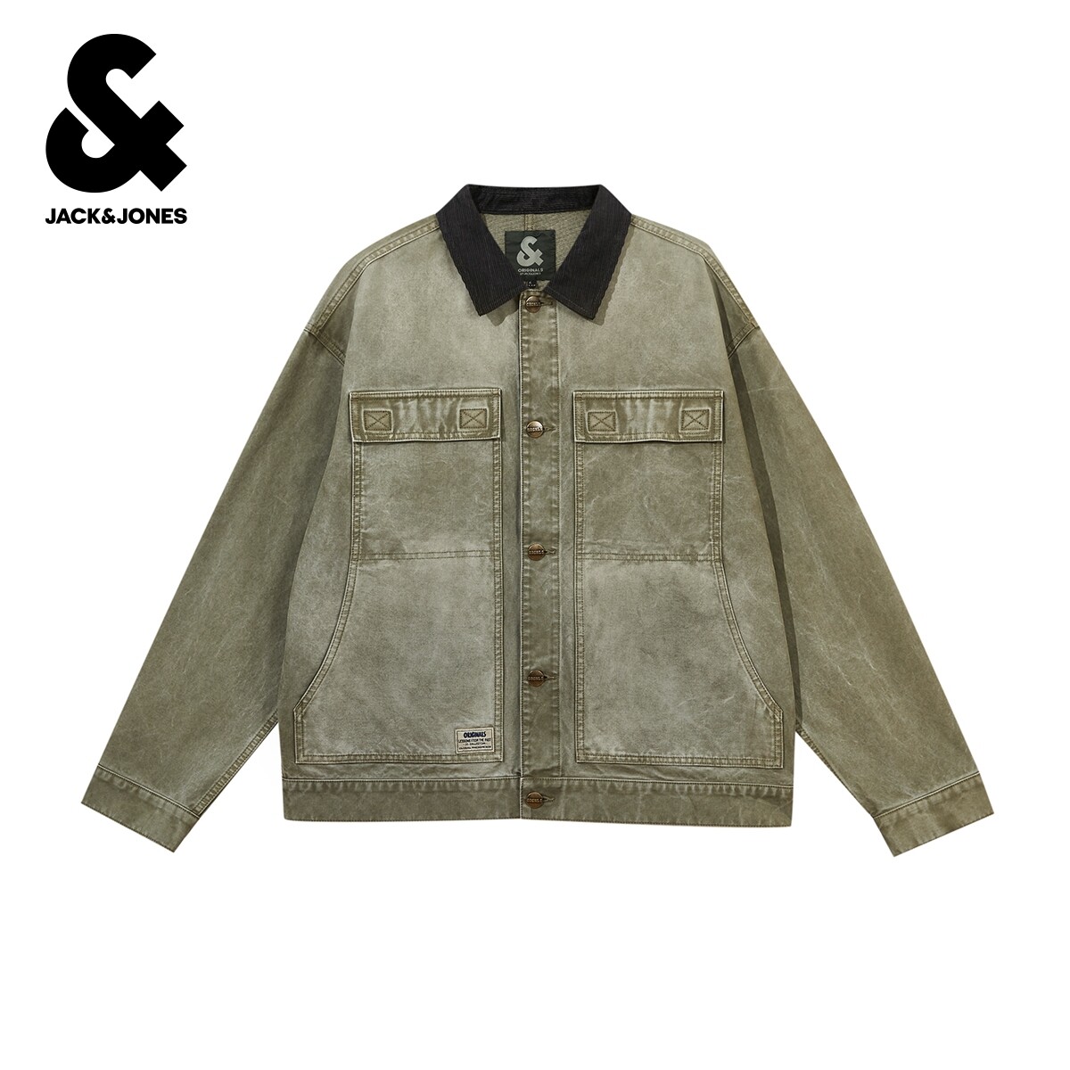 杰克琼斯男装春季新款纯棉夹克复古水洗灯芯绒翻领宽松牛仔外套