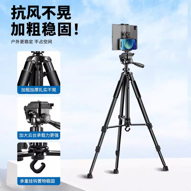 手机拍摄支架直播专用自拍杆三脚架落地式多功能支撑架通用捭机架户外便携伸缩升降网课考研复试架子三角支夹