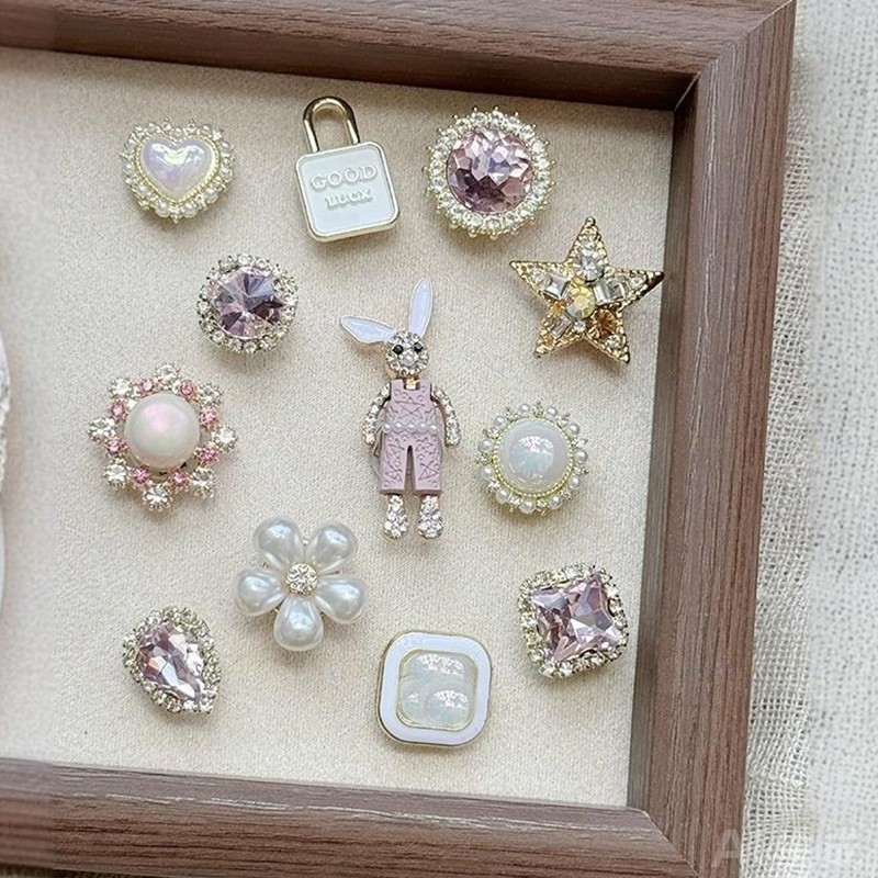 适配crocs洞洞鞋配饰鞋花装饰高级感骨白泡芙卡扣水钻金属珍珠女