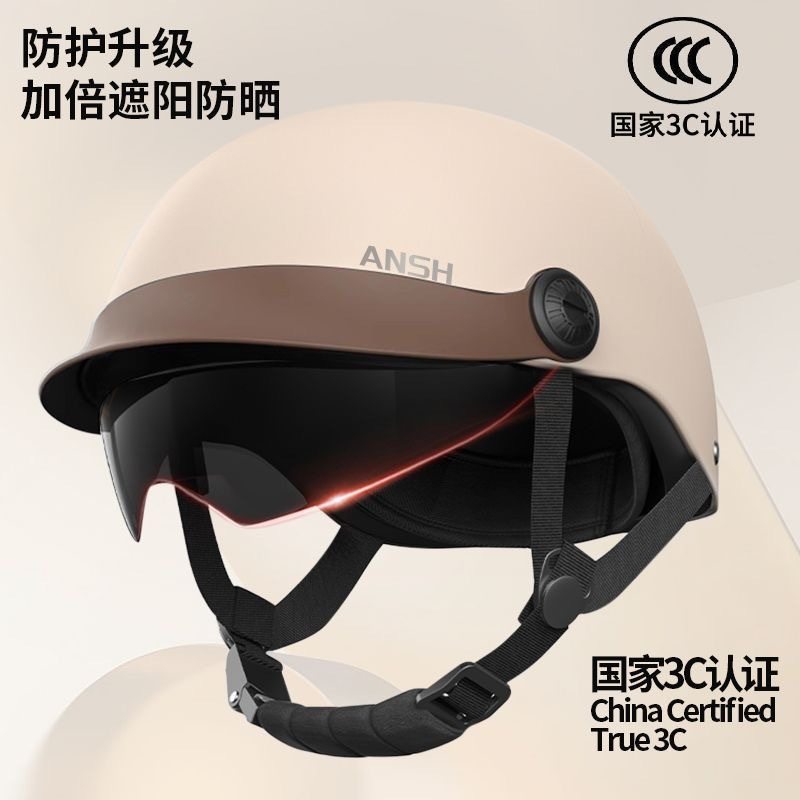 新国标3c认证电动车头盔电瓶摩托车安全帽夏季半盔四季通用镜片