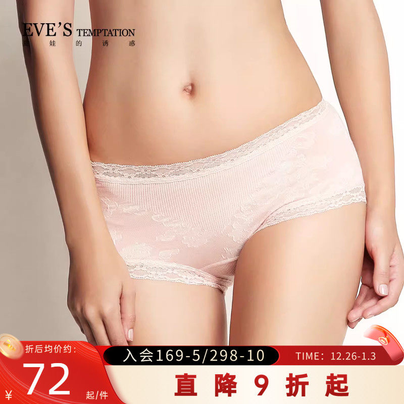 夏娃的诱惑提花短裤性感中腰收腹包臀舒适女士内裤女蕾丝边平角裤