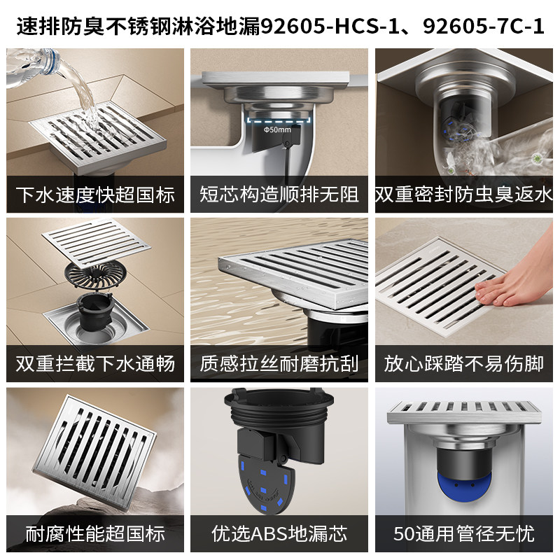 九牧防臭地漏304不锈钢卫生间淋浴大排量通用下水防虫防返臭神器