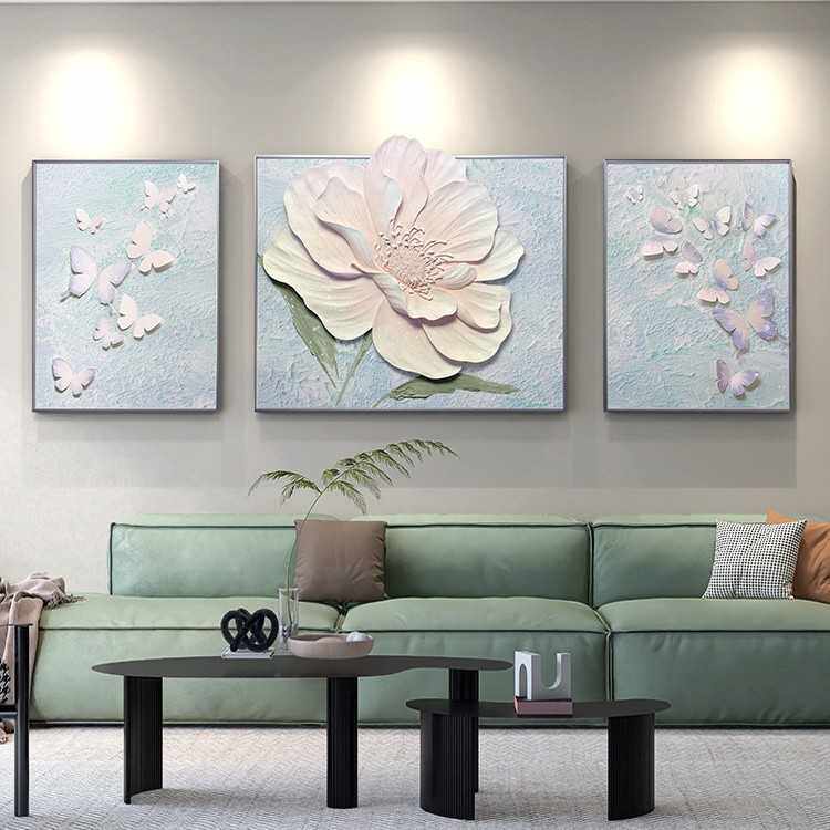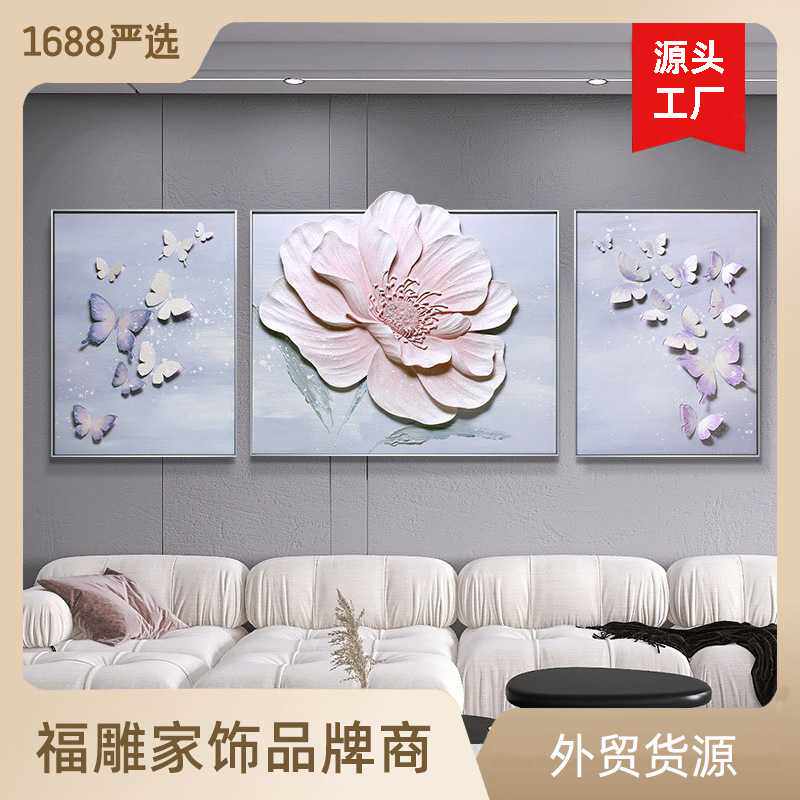 浮雕家饰立体沙发背景墙三联装饰画壁画客厅挂画轻奢高端现代简约