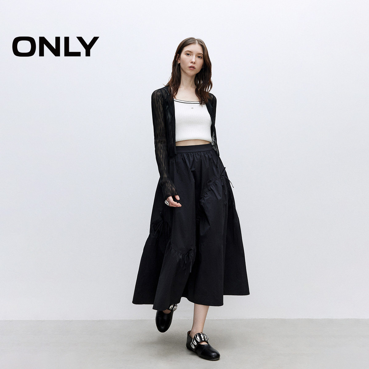 【ONLY奥莱】春夏新款蝴蝶结绑带松紧腰A字蛋糕裙半身裙女