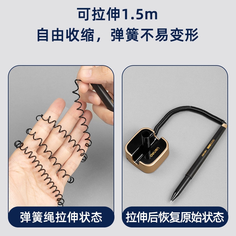 得力微笑台笔固定签字笔防丢笔黑色0.5mm柜台财务酒店吧台桌面台式笔笔座带线办公家用中性笔粘桌笔文具6791