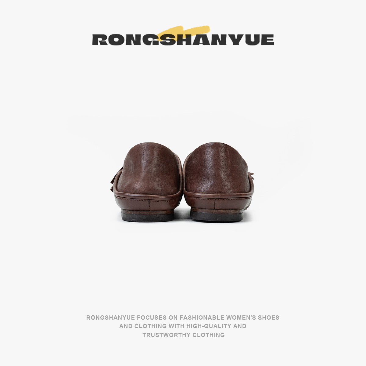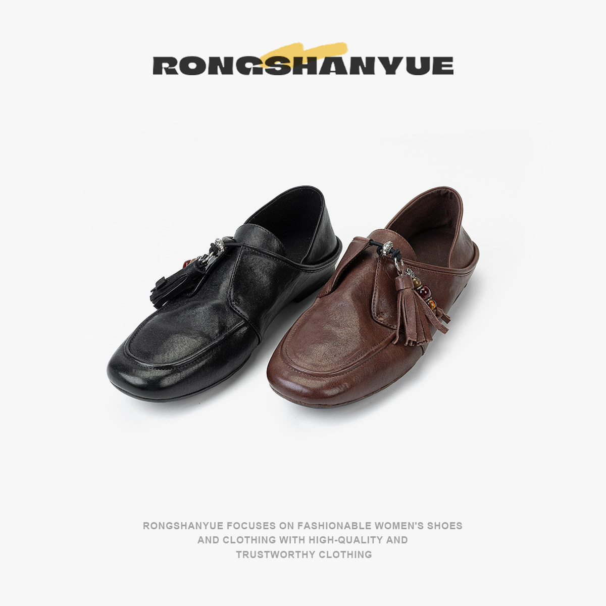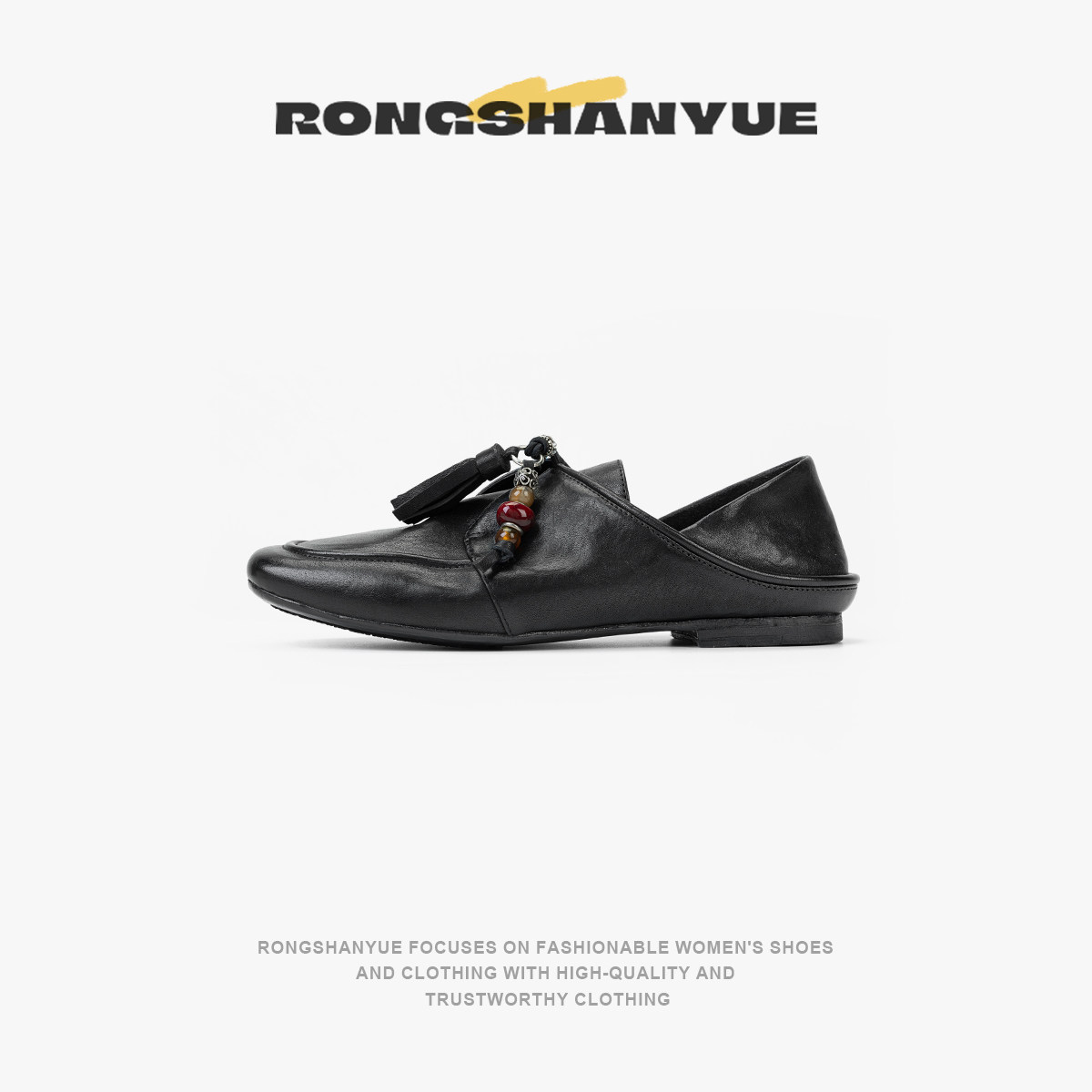 Rongshanyue法式平底单鞋女复古流苏方头浅口软底小皮鞋B1400