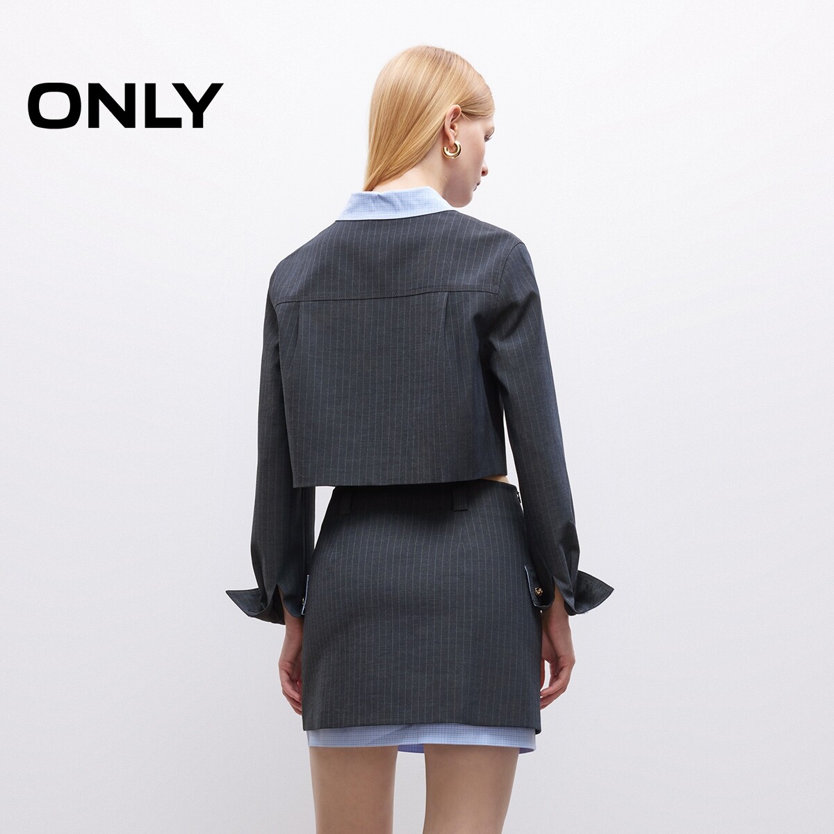 【ONLY奥莱】春款撞色双层裙边挺括西装面料A字包臀短裙半身裙女