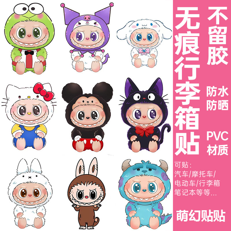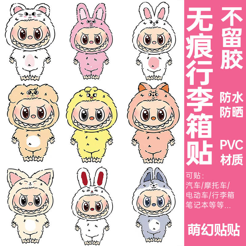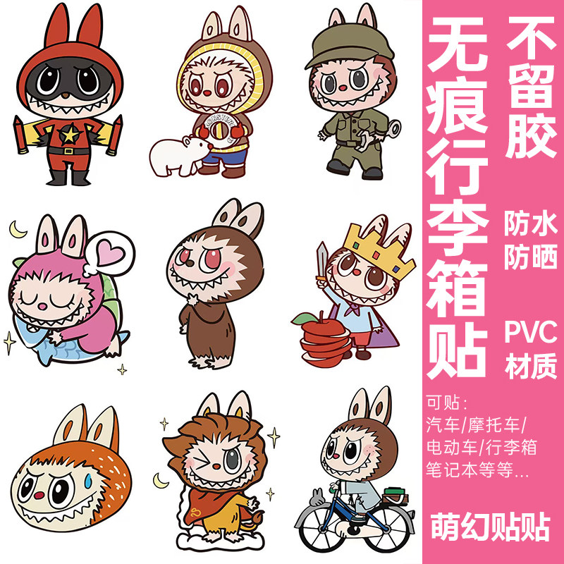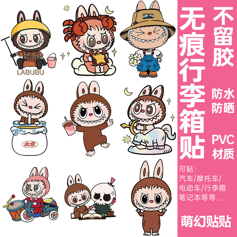 LABUBU行李箱贴纸防水不留胶高级感拉布布电动车旅行箱装饰小贴纸