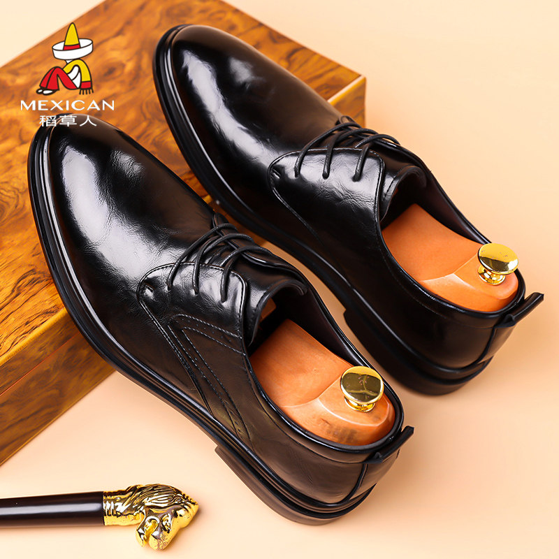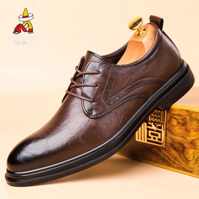 稻草人2025新款男士皮鞋商务正装男款上班鞋加绒休闲尖头棕色舒适