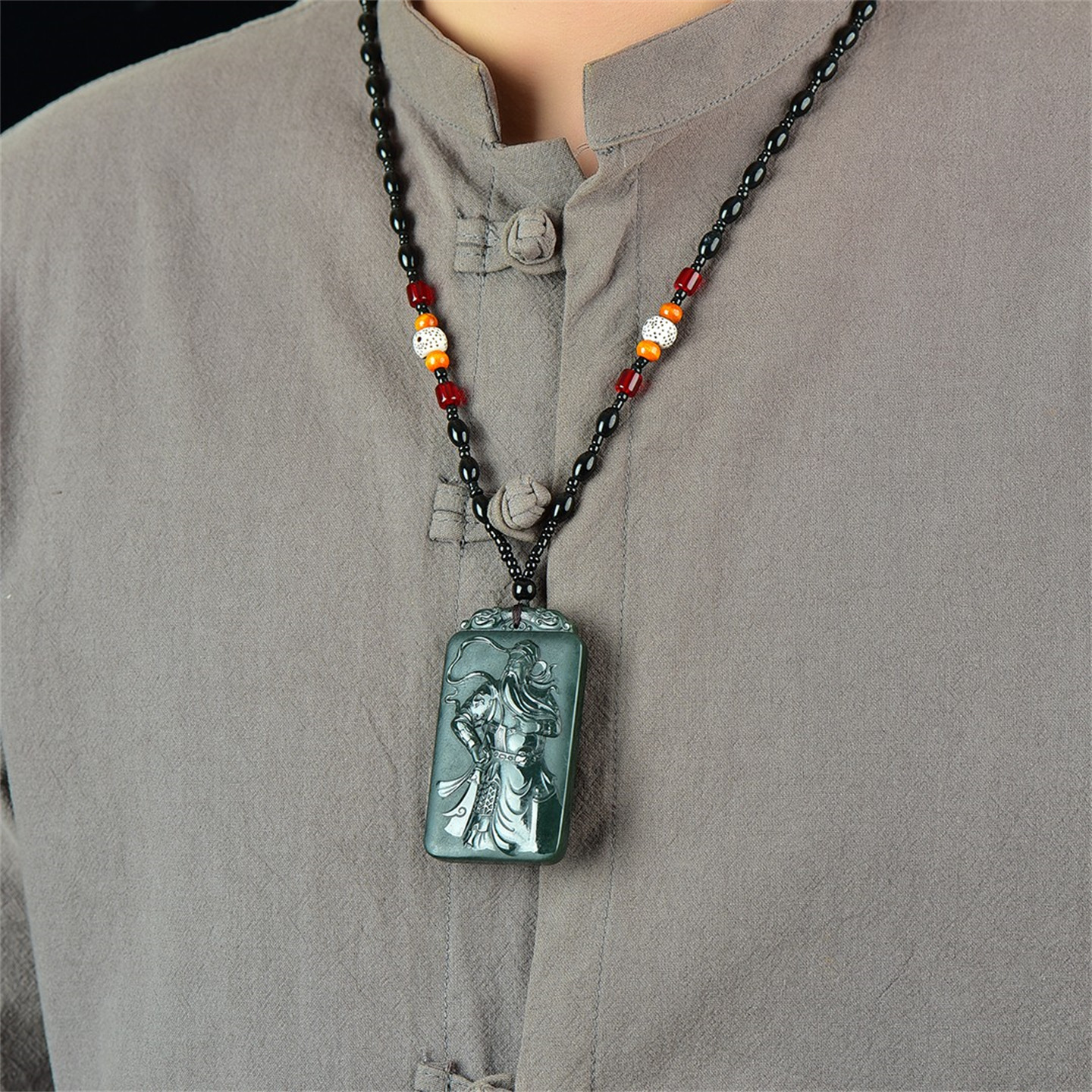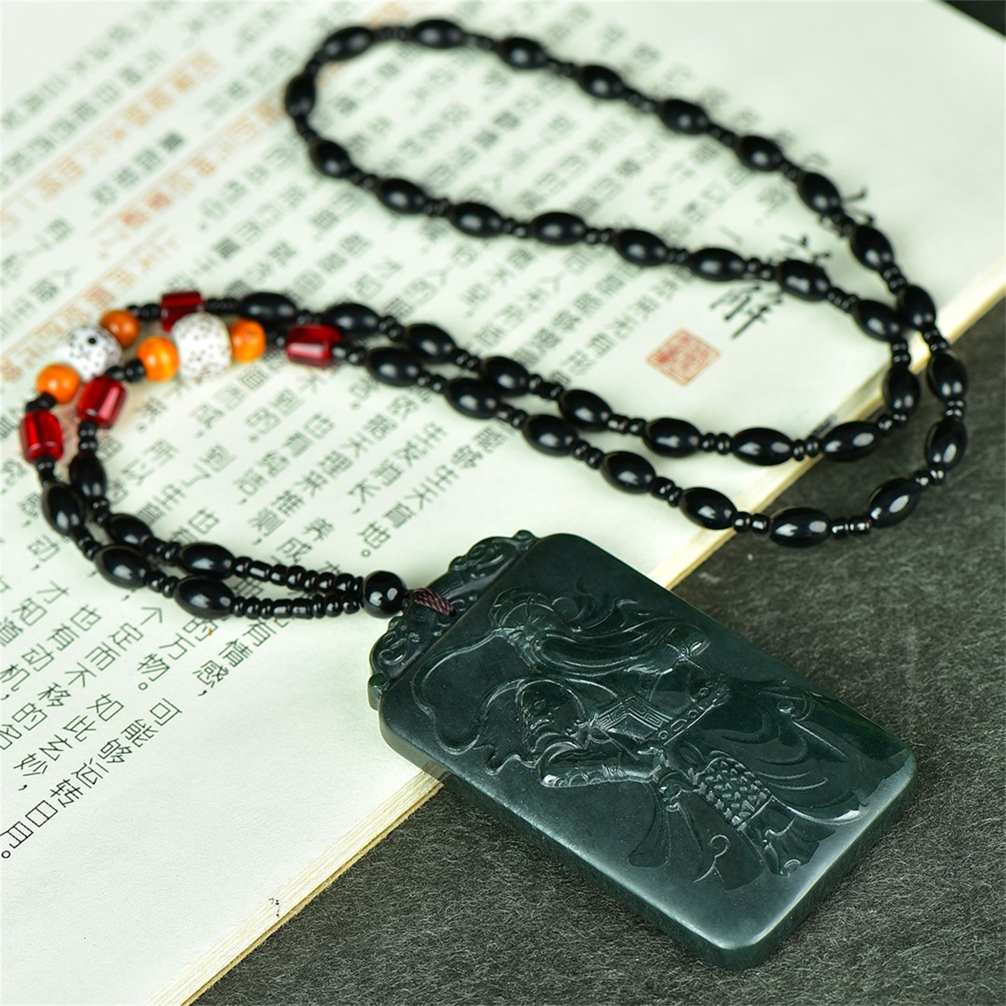 送证书天然新疆和田玉青玉挂件忠义关公玉石吊坠男款玉佩8724