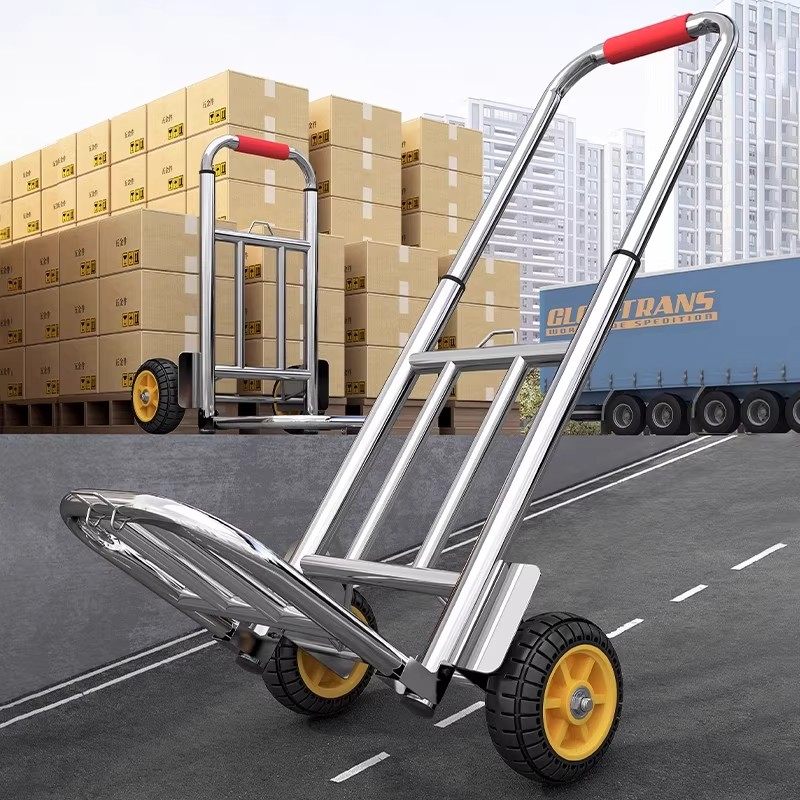 304不锈钢手推车平板搬运车拉货家用静音折叠小推车水产海鲜拖车