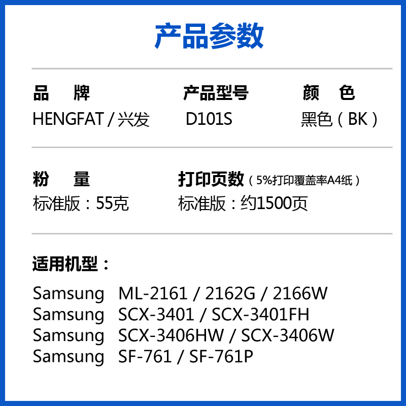 适用三星SCX-3401/FH硒鼓3405 3400 3406W/HW MLT-D101S打印机墨盒2160 ML2161 2162G 2165 2166W SF761P碳粉