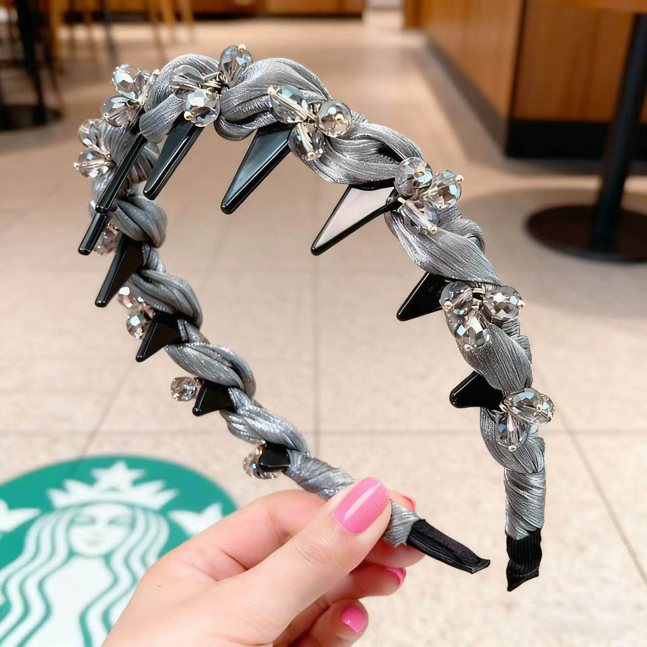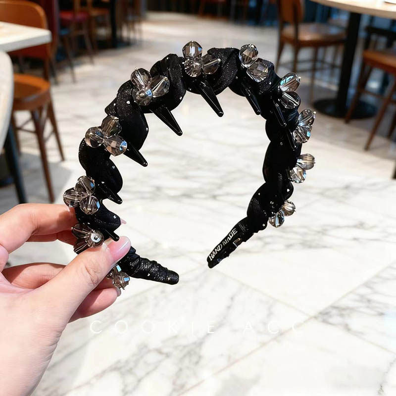 防滑洗脸水钻发箍女高颅顶2025新款轻奢外戴带齿黑色发卡发饰头箍