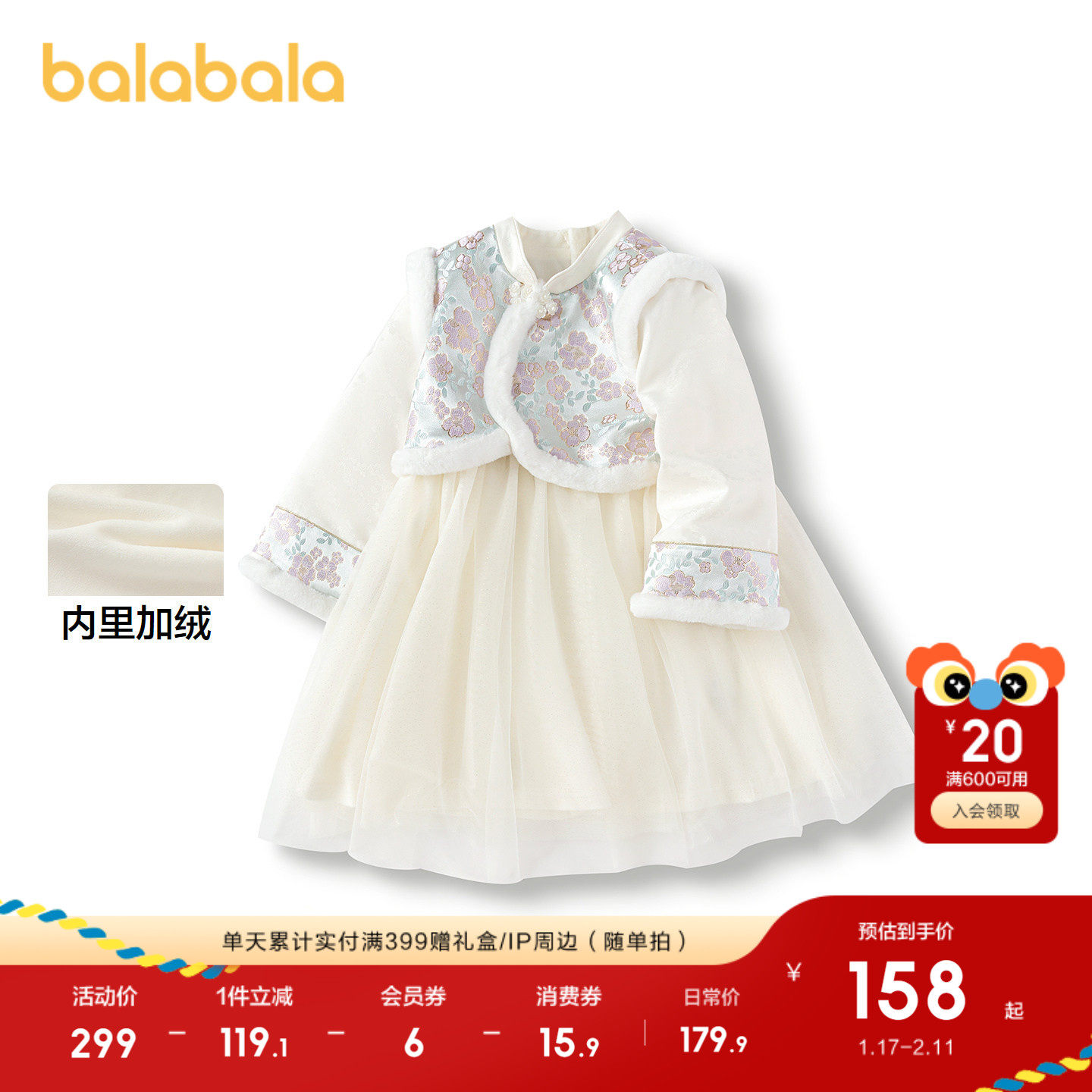 巴拉巴拉女童汉服改良襦裙国风连衣裙冬新款裙子