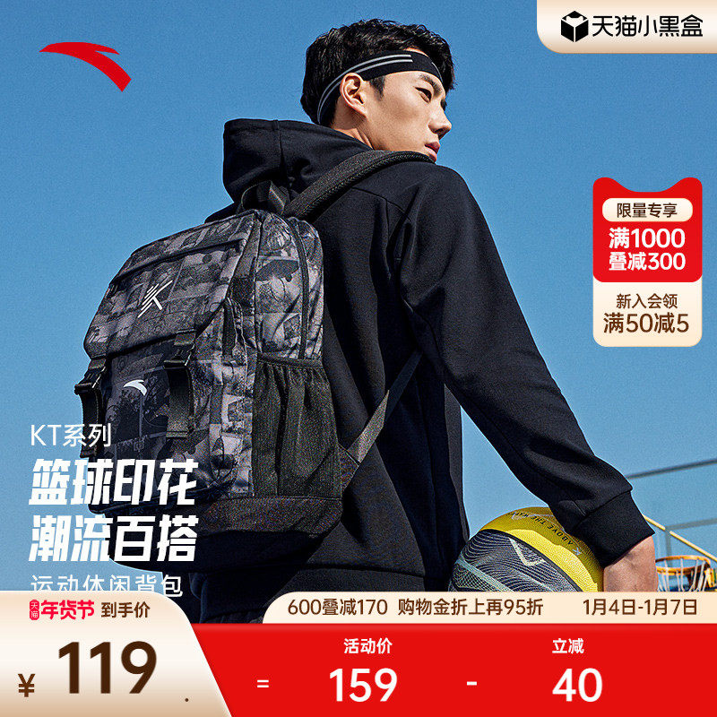 安踏双肩包男黑色健身休闲大容量户外轻量篮球背包旅游运动登山包