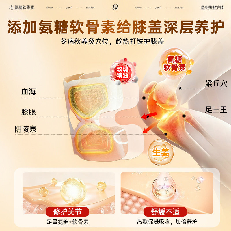 同仁堂膝盖热敷贴氨糖软骨素贴护膝防寒关节艾草发热暖膝艾灸暖贴