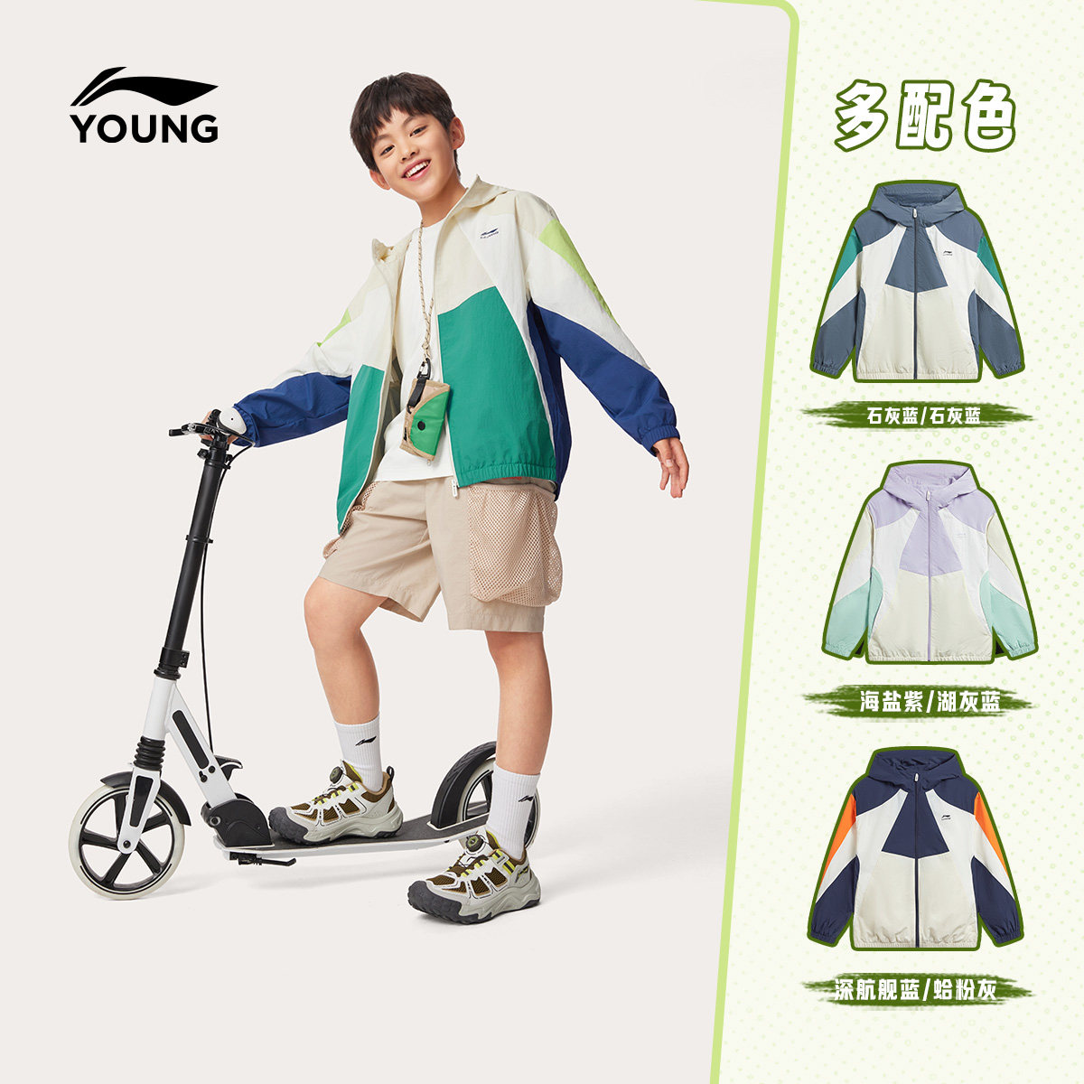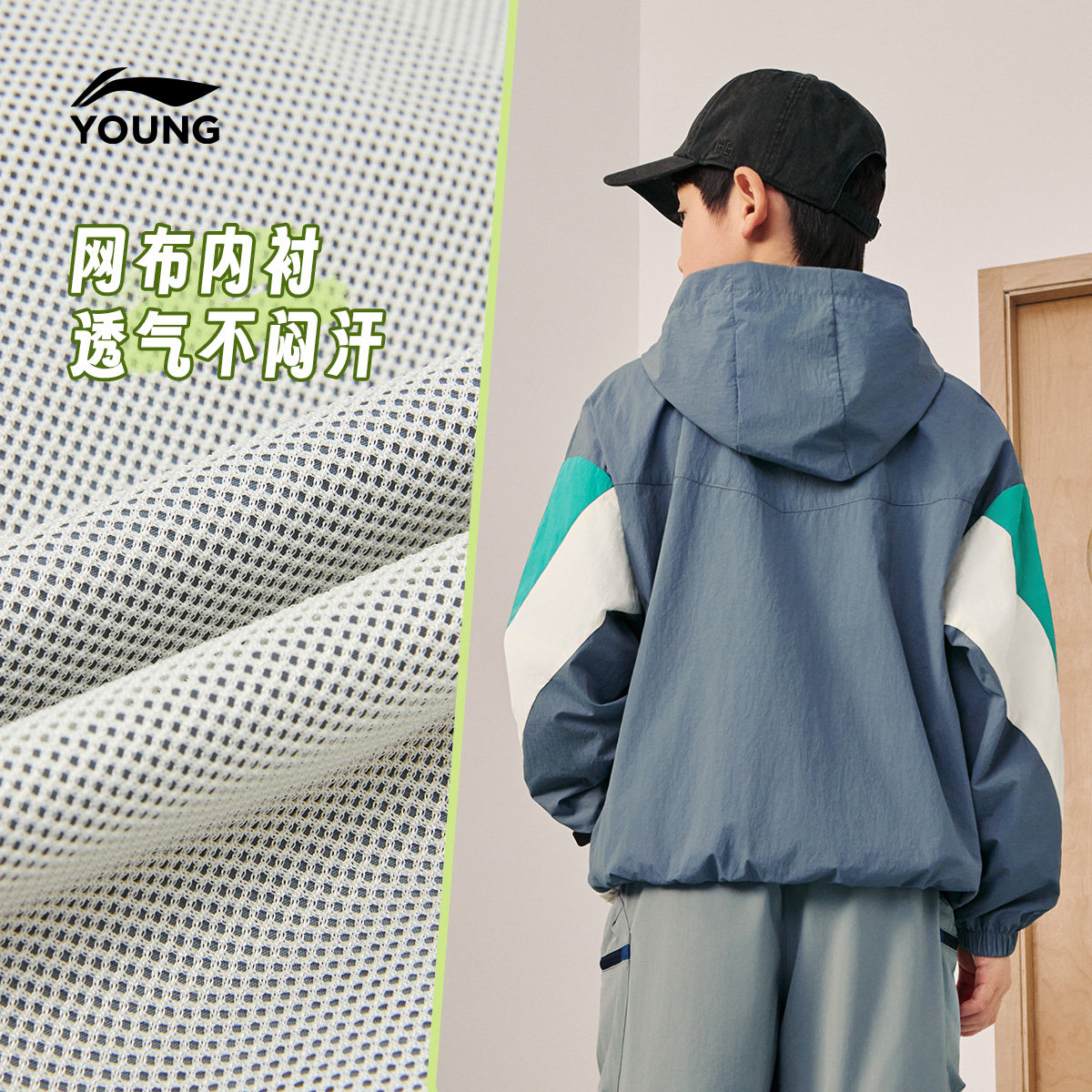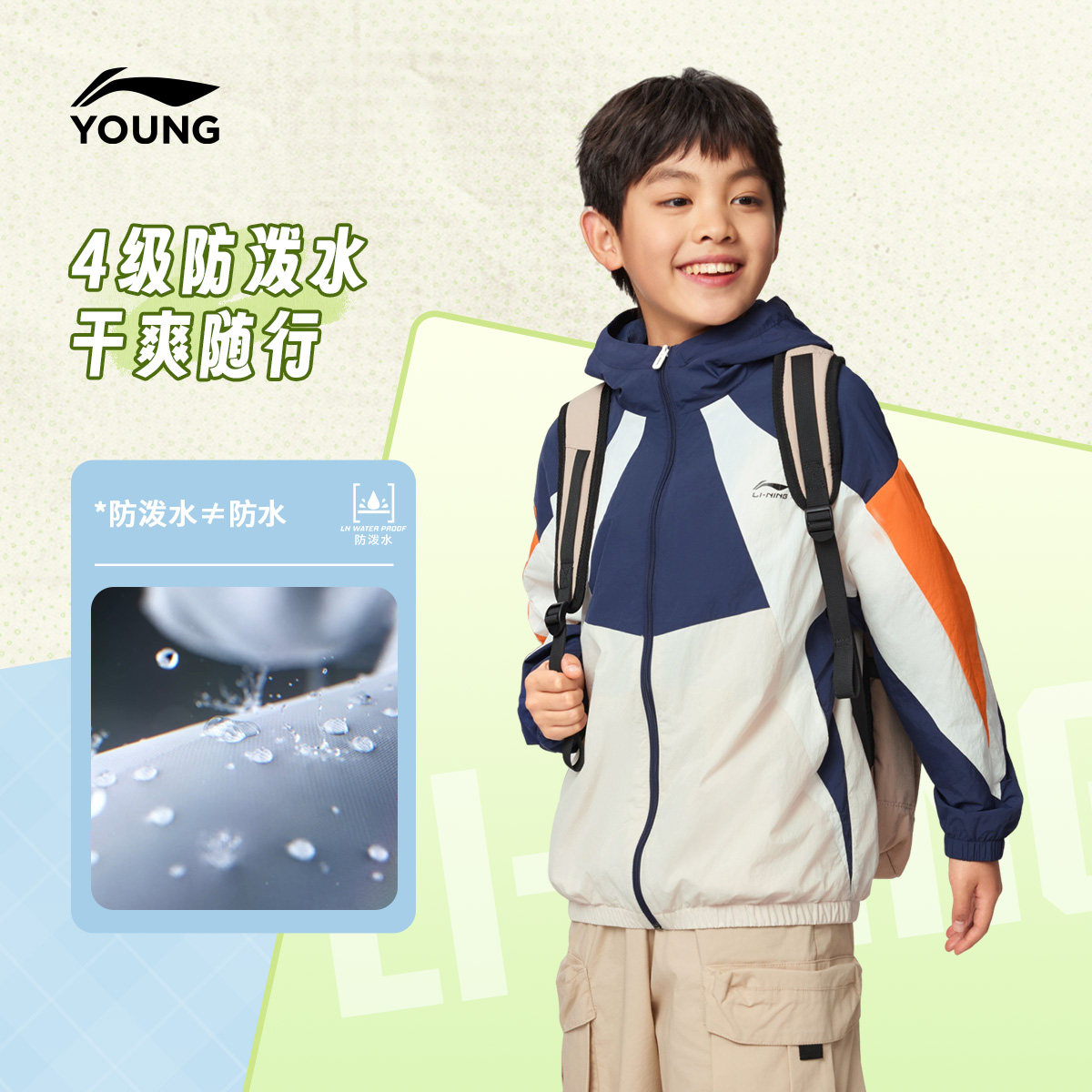 李宁童装风衣男女小大童运动生活系列外套连帽春季休闲梭织童装