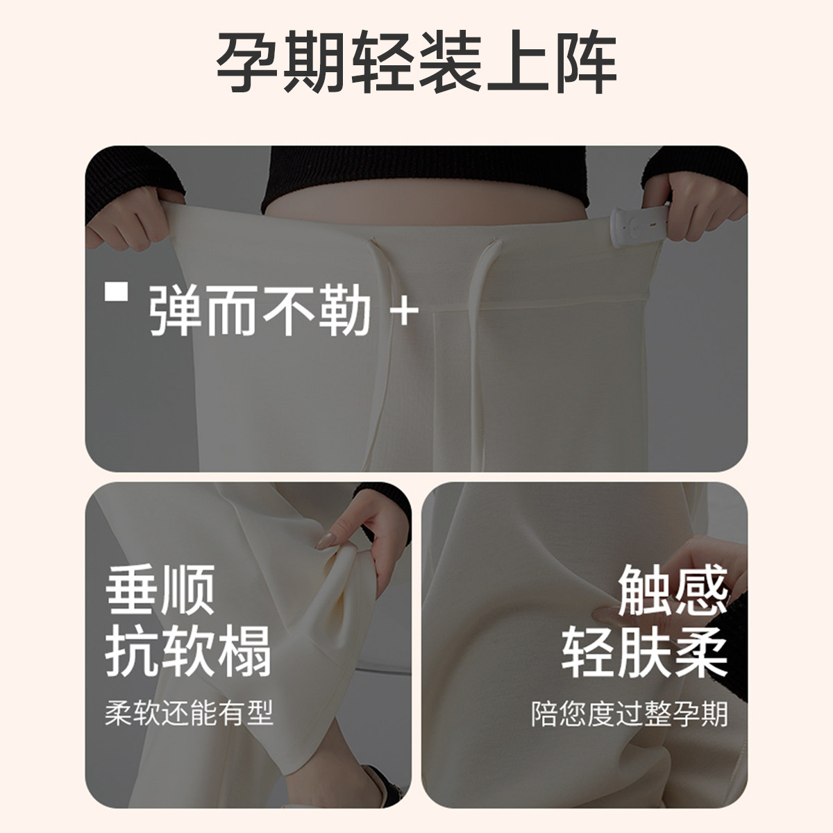 婧麒不勒肚子孕妇裤2026新款外穿窄版阔腿裤无托腹休闲裤孕妇春装
