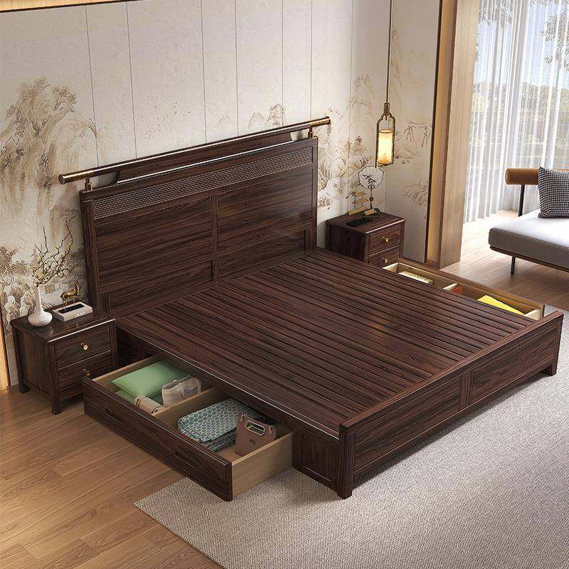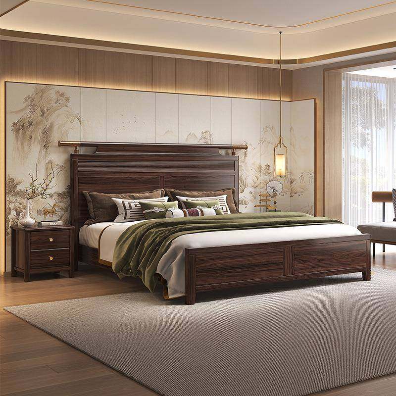 家用卧室简约实木双人床新中式乌金木高端极简1.8m主卧储物床家具