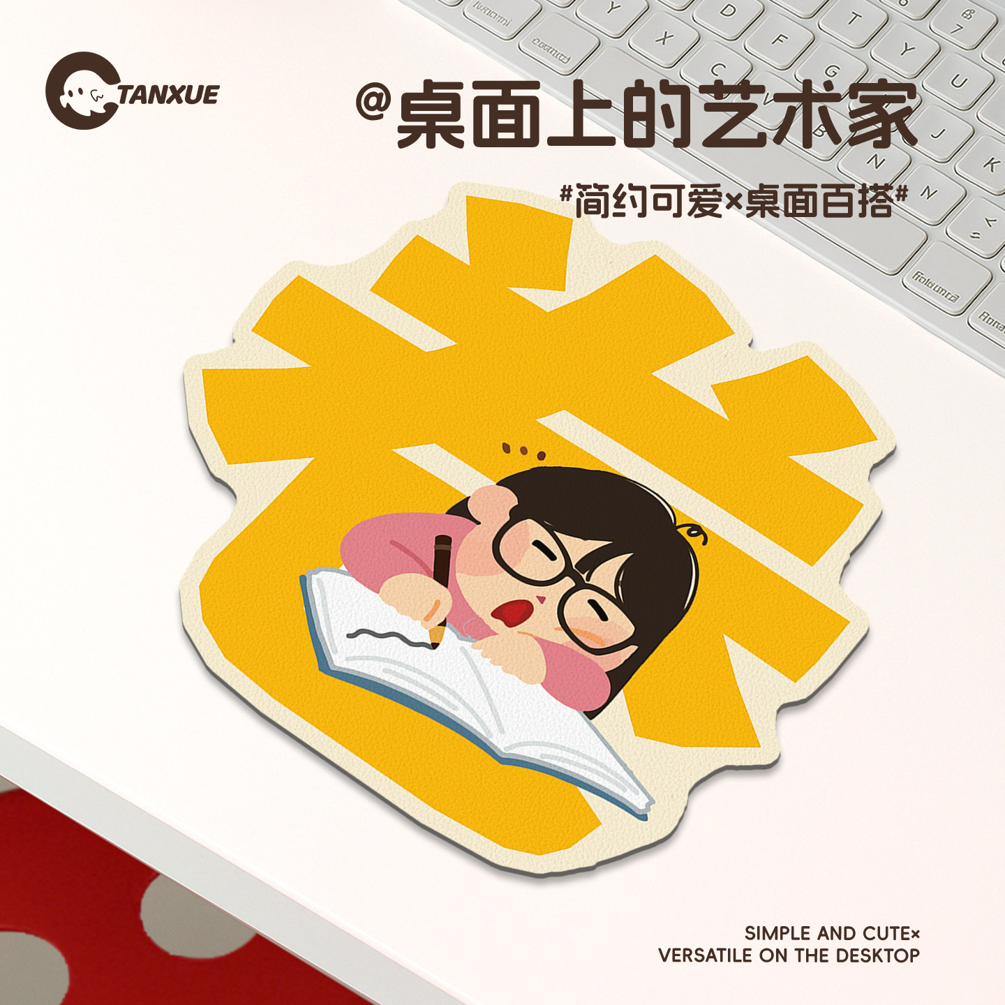 ins上班族表情包皮革鼠标垫女生护手腕高颜值小号电脑工位桌垫