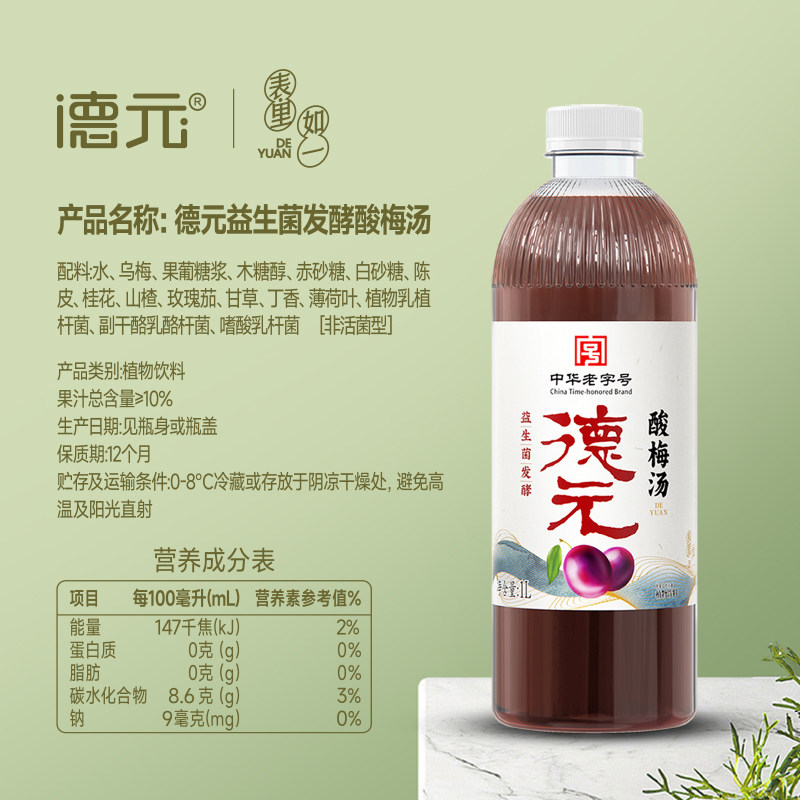 【临期2026年6月到期】德元益生菌酸梅汤1L*2瓶家庭装火锅伴侣