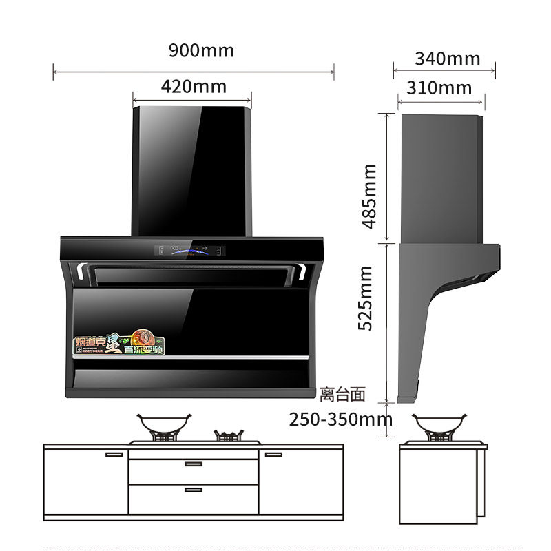 家用厨房油烟机家用厨房7字型顶侧双吸直流变频大吸力抽油烟机