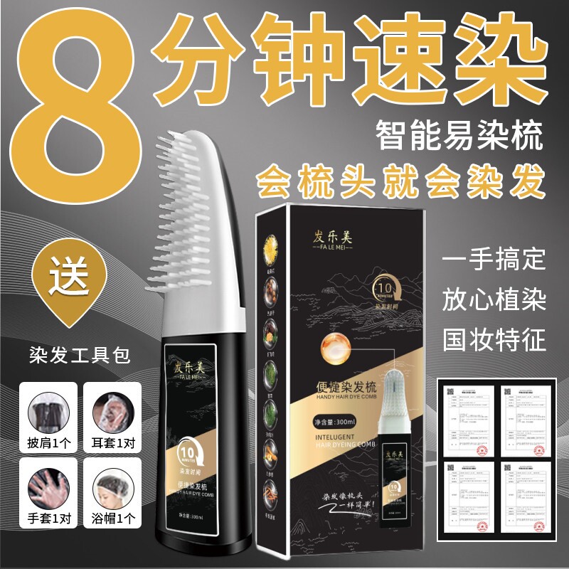 智能染发梳染发膏黑色纯植物天然无刺激遮盖染白发不沾头皮一梳黑