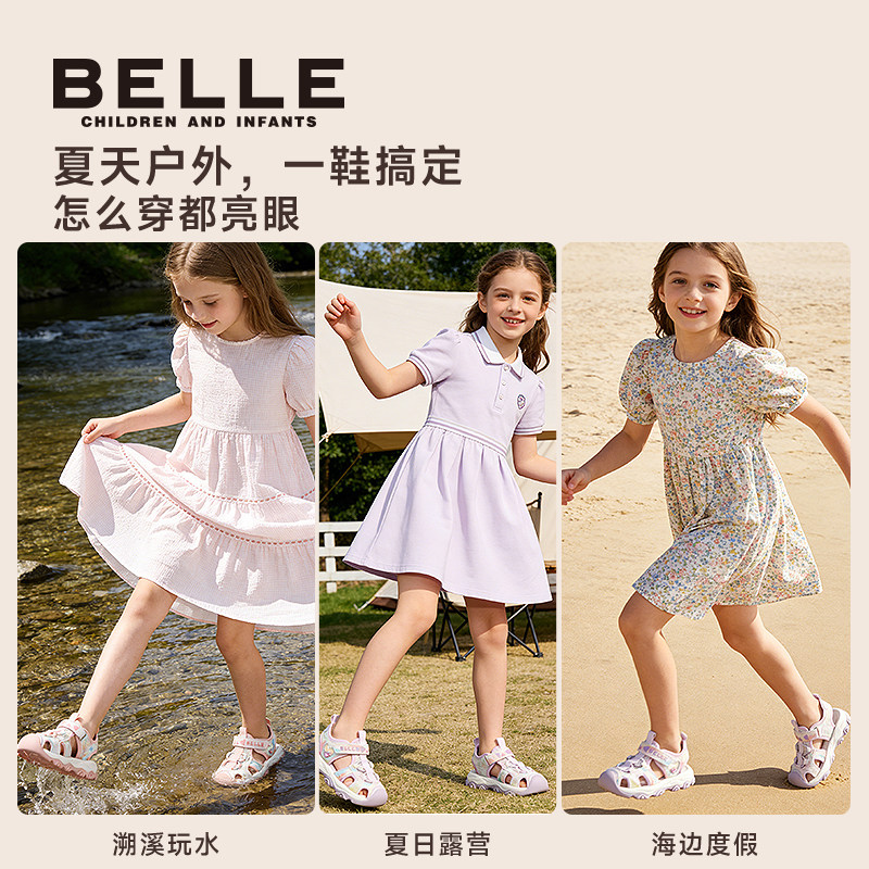 百丽童鞋儿童运动凉鞋女童溯溪鞋2026夏季新款透气网面宝宝沙滩鞋