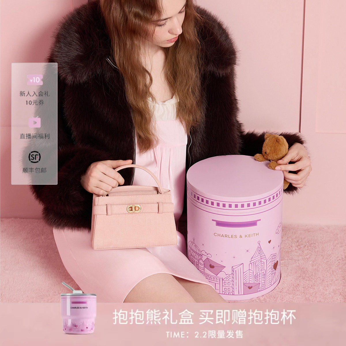 CHARLES&KEITH26新款CK2-50270880-4鳄鱼纹单肩凯莉包抱抱熊礼盒