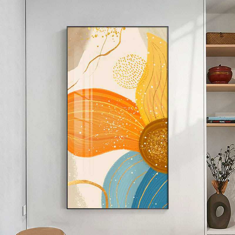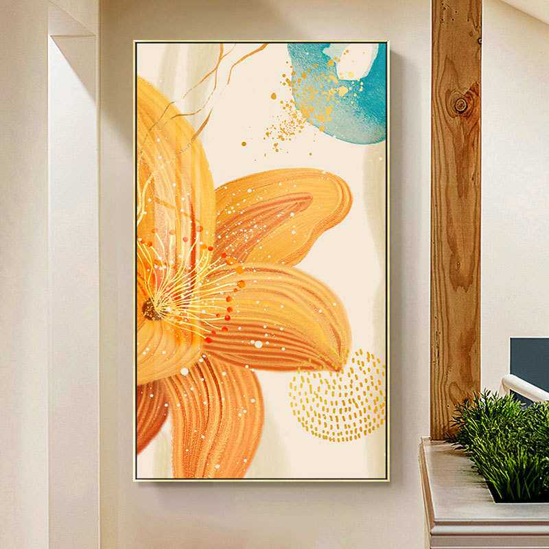 入户正对门现代轻奢玄关装饰画抽象花卉走廊尽头壁画沙发后面挂画
