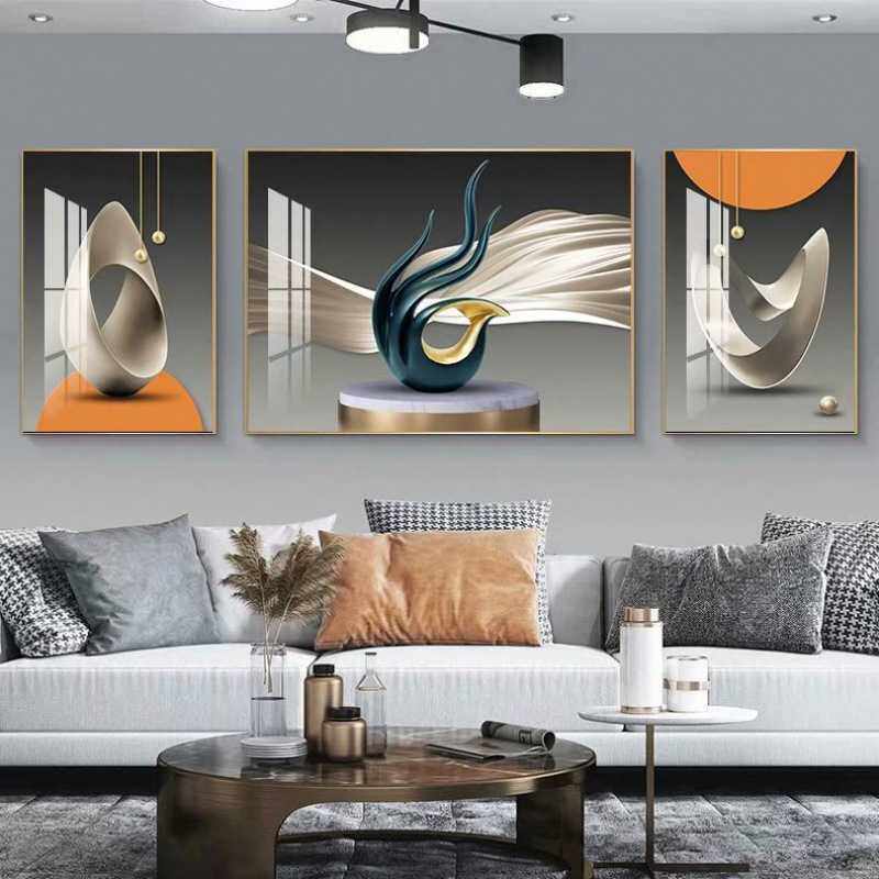 北欧客厅装饰画现代简约沙发背景墙挂画轻奢大气后现代三联壁画